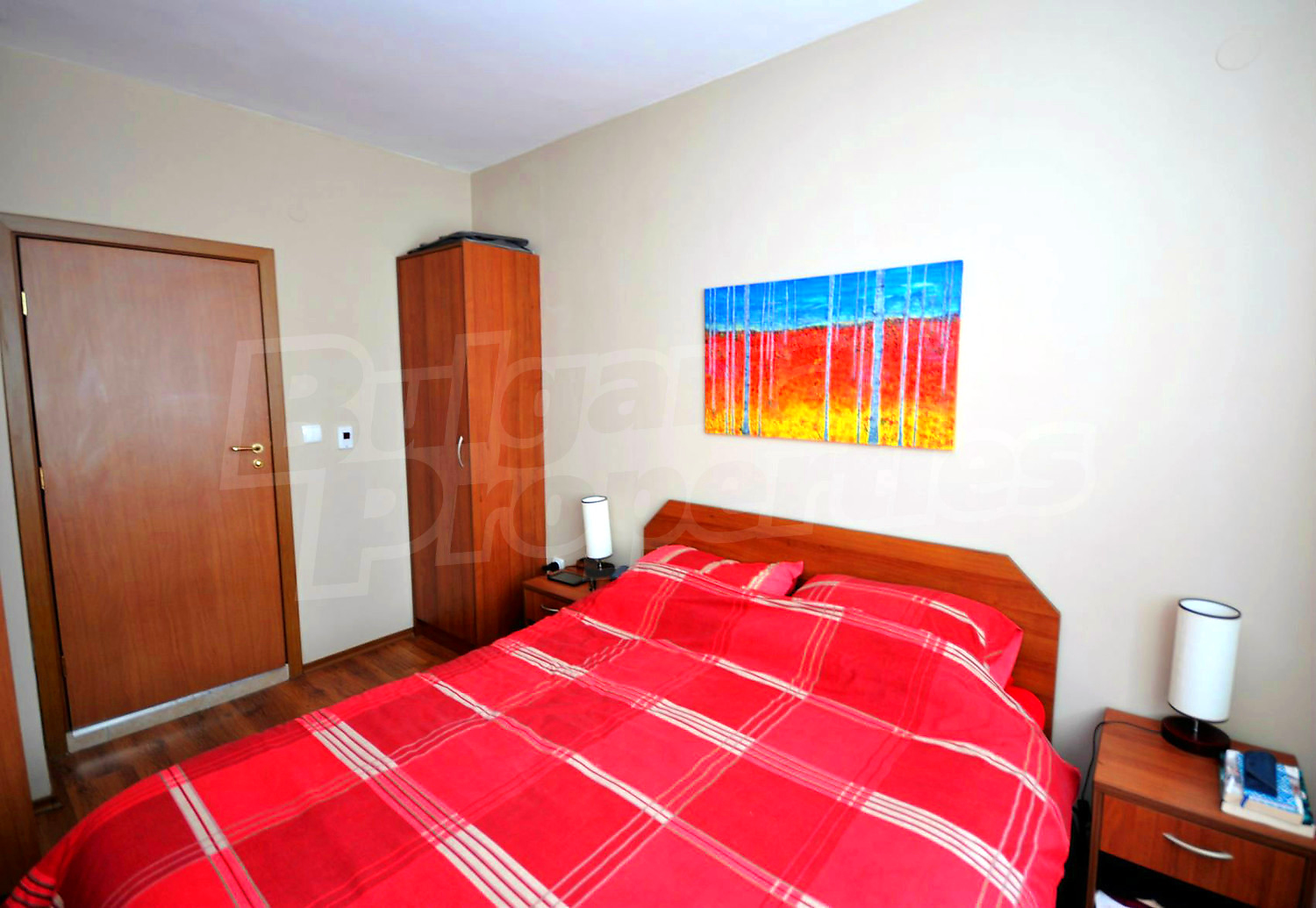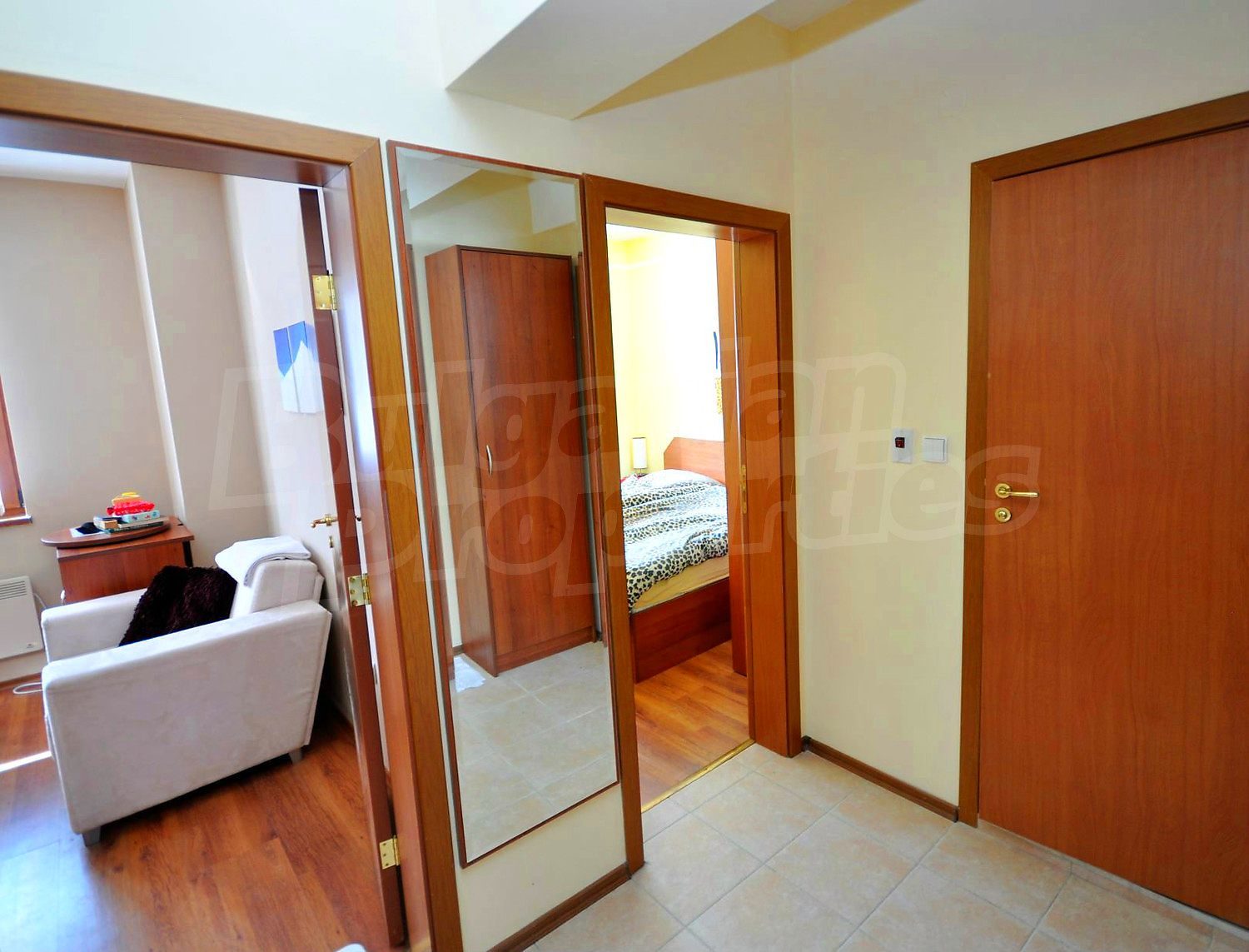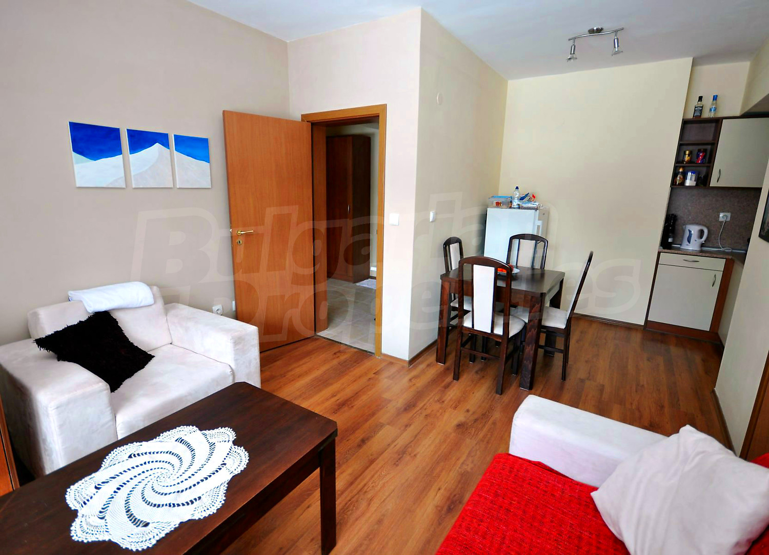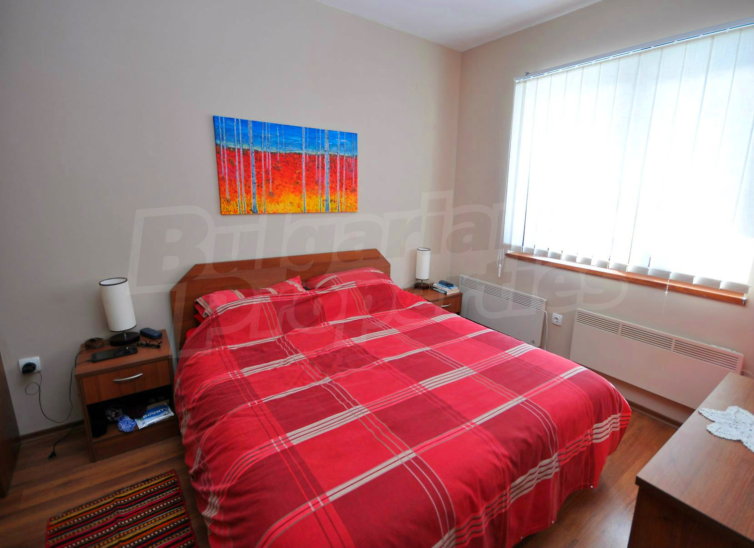 Жилището (70 кв.м.) се намира на втори етаж, с южно изложение, с гледка към гора, планината и вътрешния двор на комплекса. Апартаментът е напълно обзаведен и оборудван, готов за незабавно ползване от собствениците или отдаване под наем на туристи. Кухненският бокс е оборудван с фурна / котлони, аспиратор, мивка, хладилник-фризер. Холът е обзаведен с двоен разтегателен диван, кресло, масичка за кафе, маса за хранене, 4 стола за хранене, щори; спалня 1 - двойно легло, 2 нощни шкафчета, гардероб, тоалетка с огледало, щори; спалня 2 - 2 единични легла, 2 нощни шкафчета, гардероб, тоалетка с огледало, щори. Банята с тоалетна е оборудвана с огледало, мивка, душ кабина, бойлер.