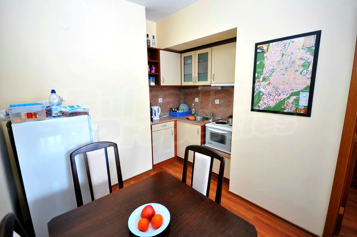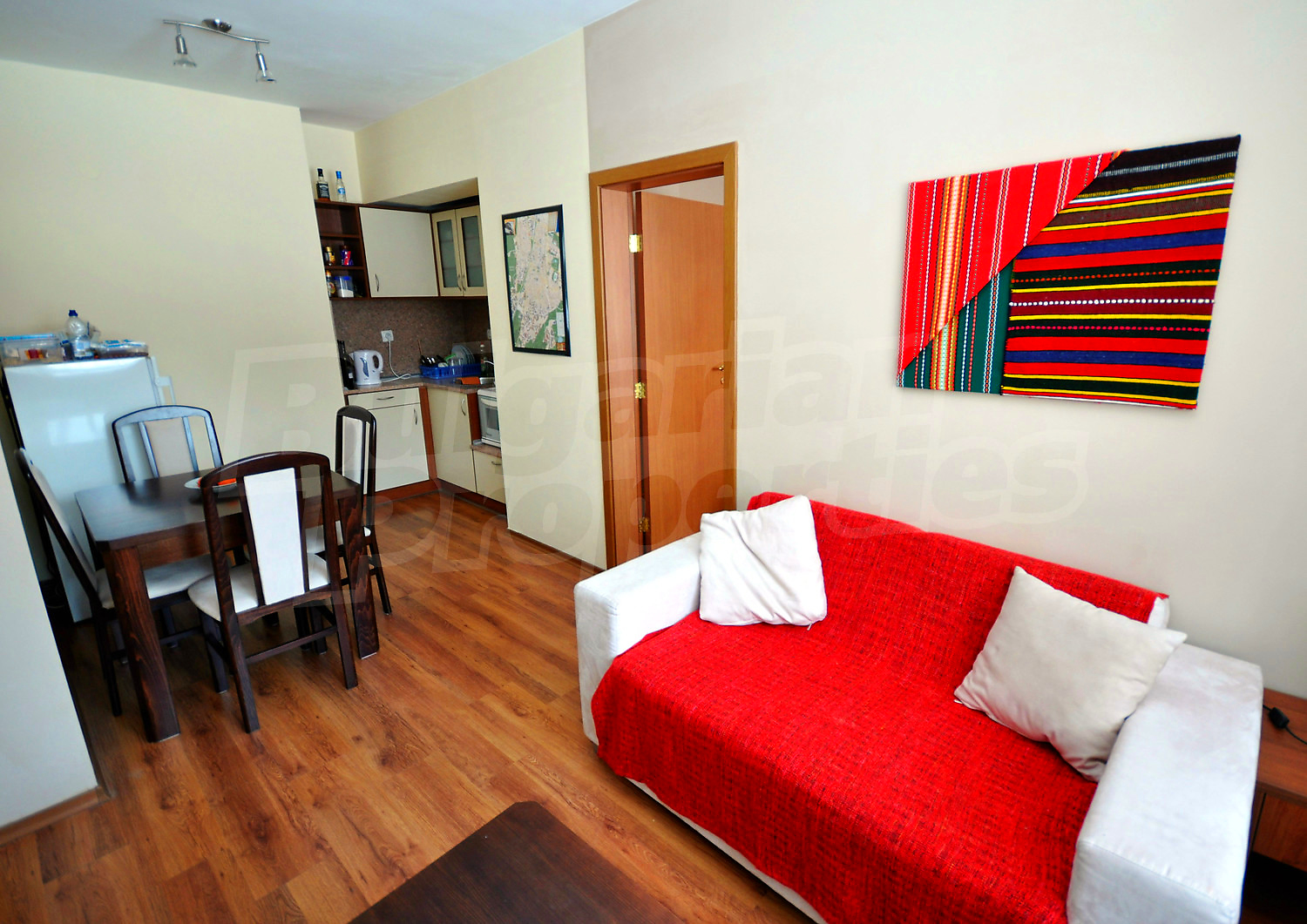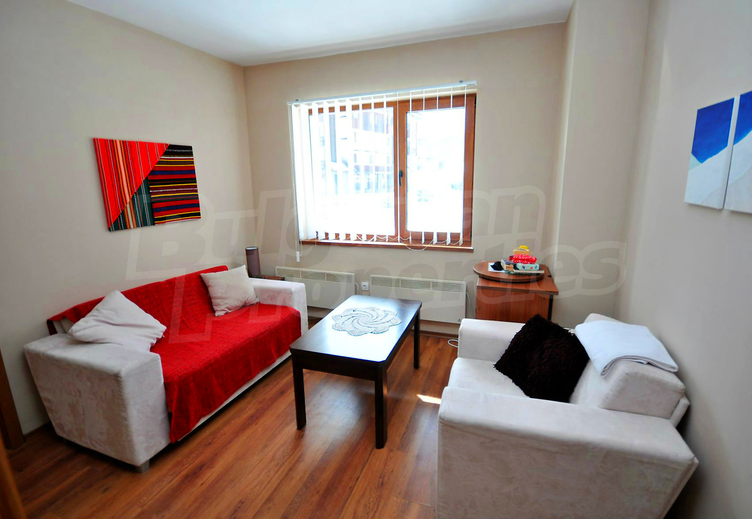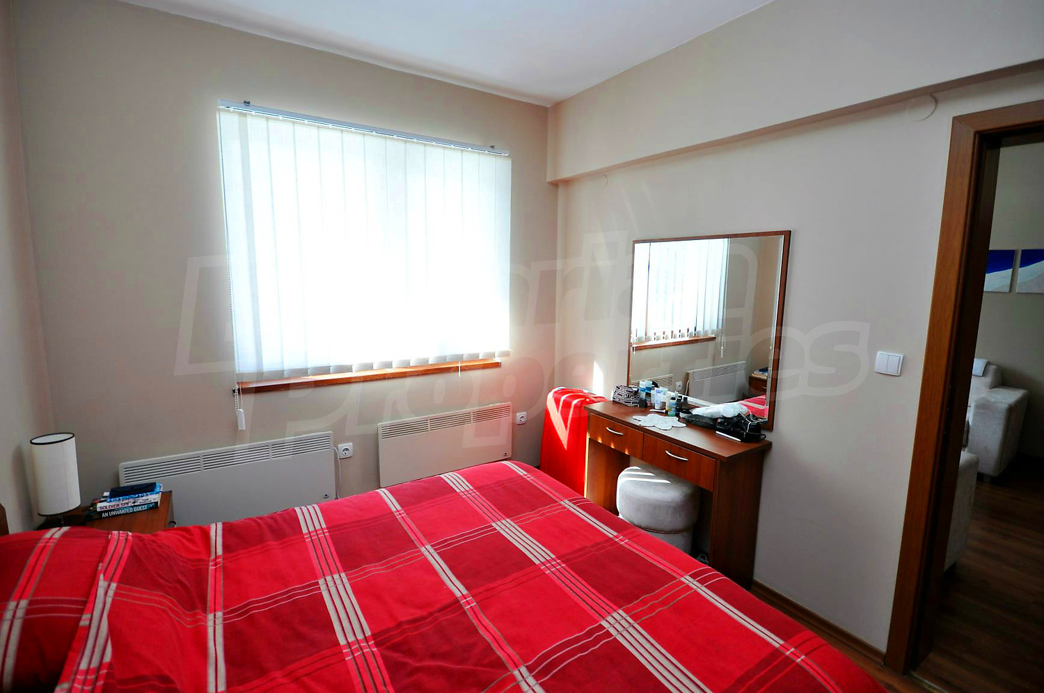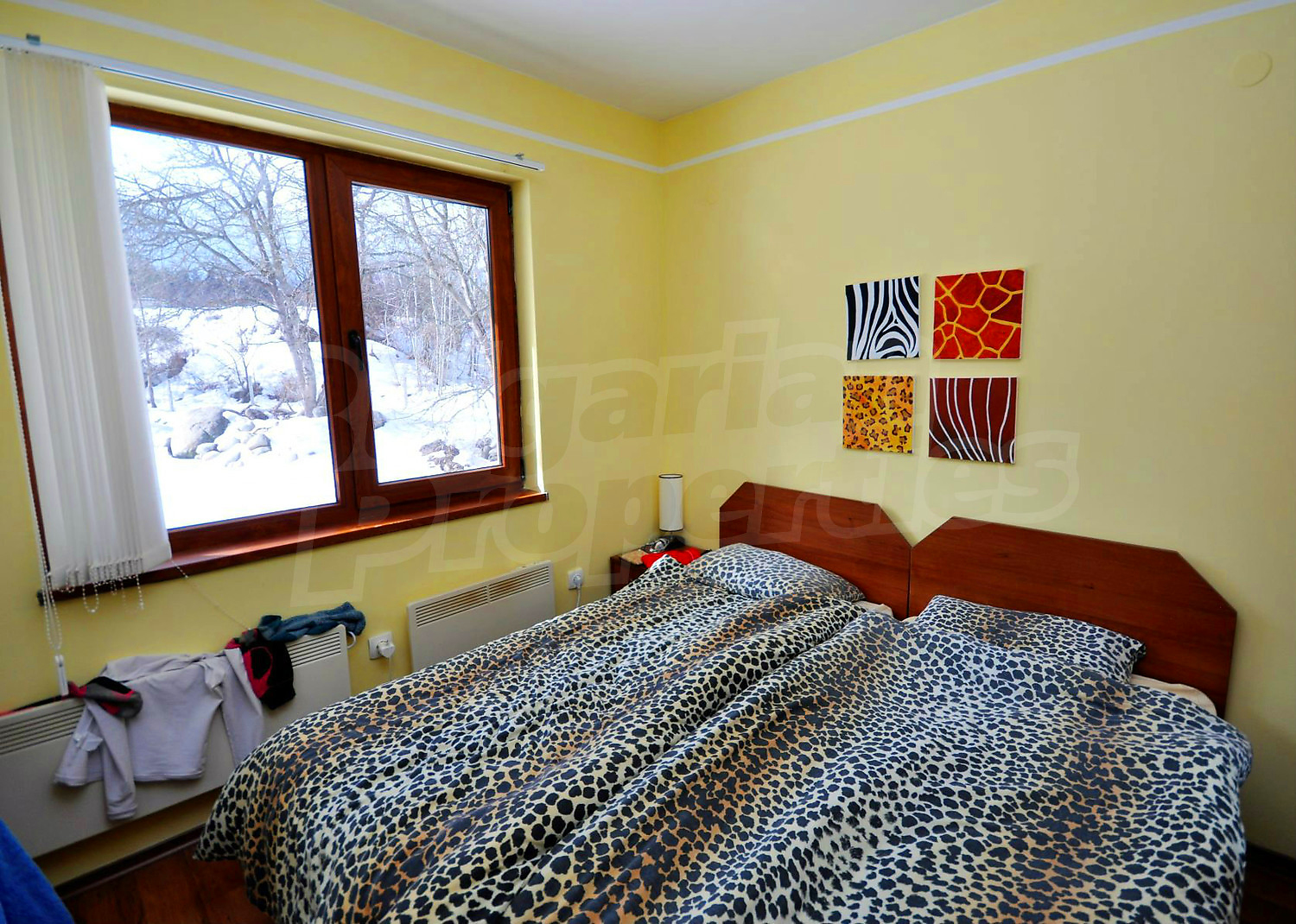 Жилището (70 кв.м.) се намира на втори етаж, с южно изложение, с гледка към гора, планината и вътрешния двор на комплекса. Апартаментът е напълно обзаведен и оборудван, готов за незабавно ползване от собствениците или отдаване под наем на туристи. Кухненският бокс е оборудван с фурна / котлони, аспиратор, мивка, хладилник-фризер. Холът е обзаведен с двоен разтегателен диван, кресло, масичка за кафе, маса за хранене, 4 стола за хранене, щори; спалня 1 - двойно легло, 2 нощни шкафчета, гардероб, тоалетка с огледало, щори; спалня 2 - 2 единични легла, 2 нощни шкафчета, гардероб, тоалетка с огледало, щори. Банята с тоалетна е оборудвана с огледало, мивка, душ кабина, бойлер.