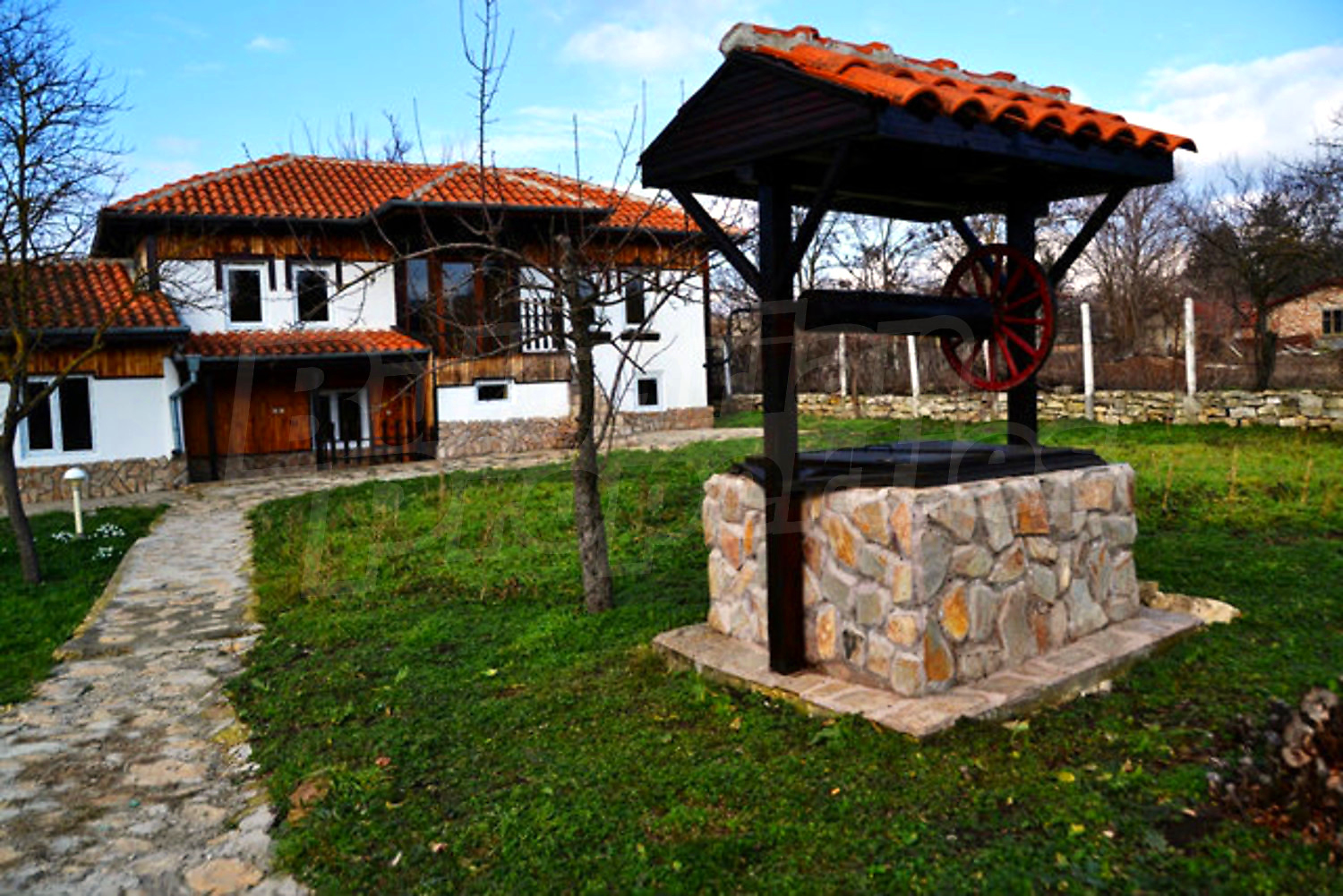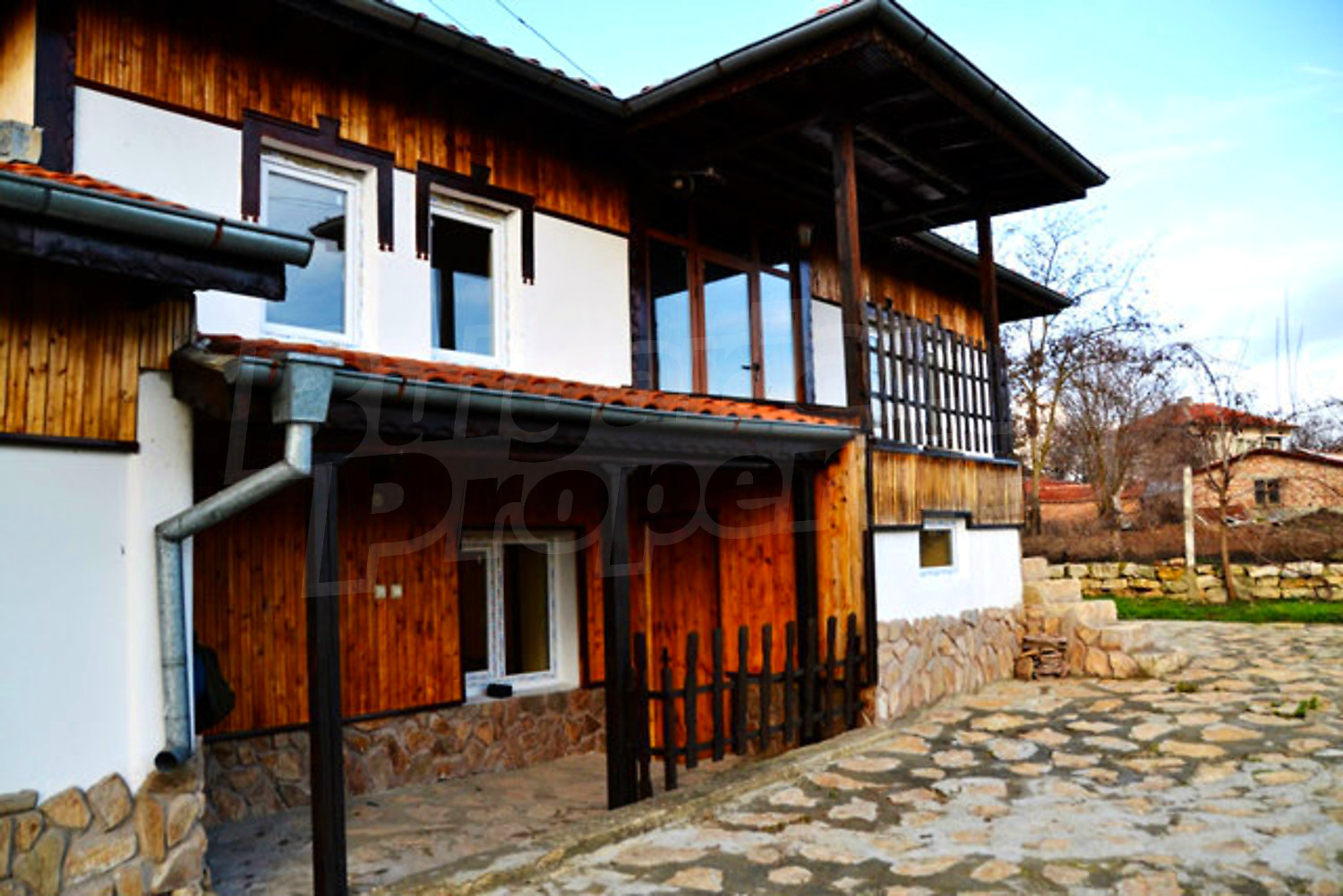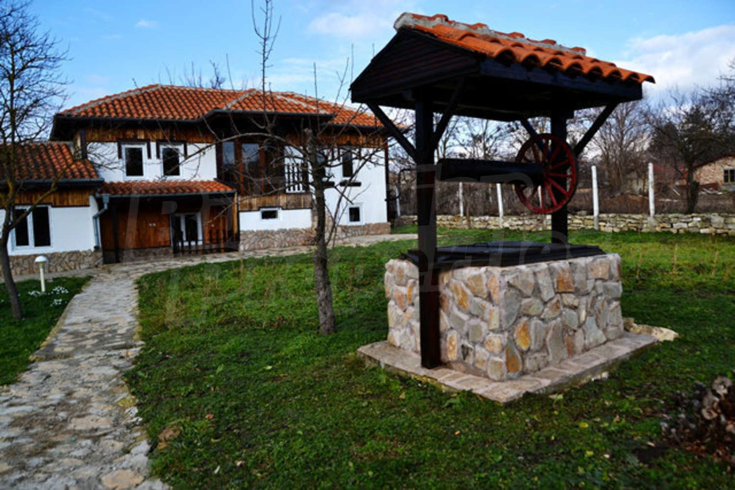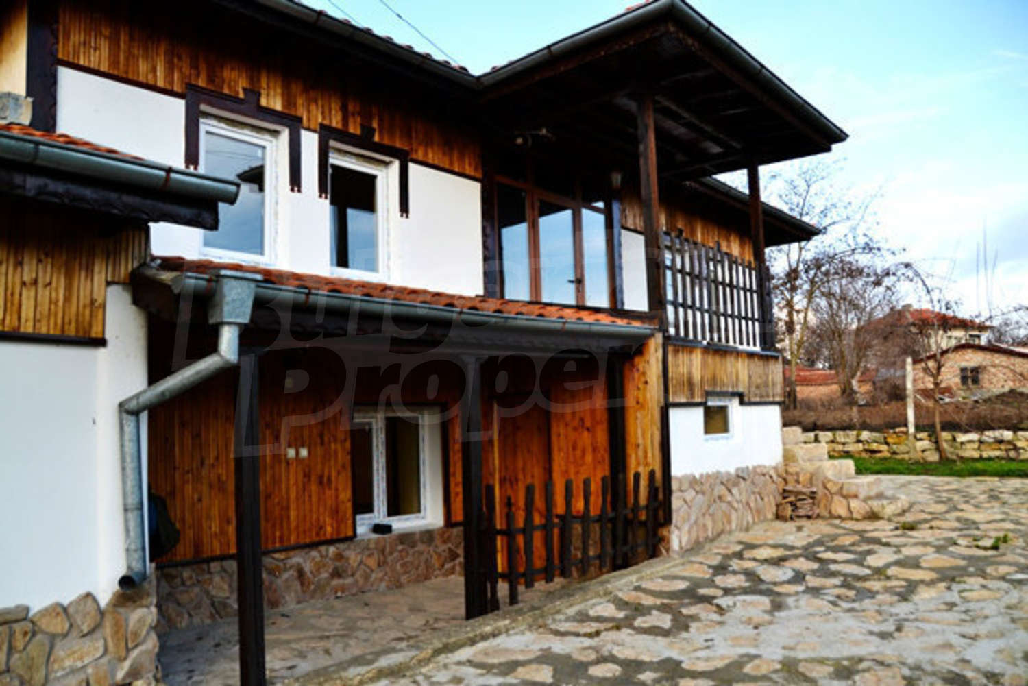 Къщата е изцяло реновирана, представлява една прекрасна инвестиция, тъй като е много добре поддържана и не се нуждае от ремонт. Стилът следва традицията с красивите малки тераси пред спалните, дървени парапети и експонирани греди, спретнато дворче. Този имот предлага обширна градина от 1250 кв. м. с красив кът за барбекю и кладенец.