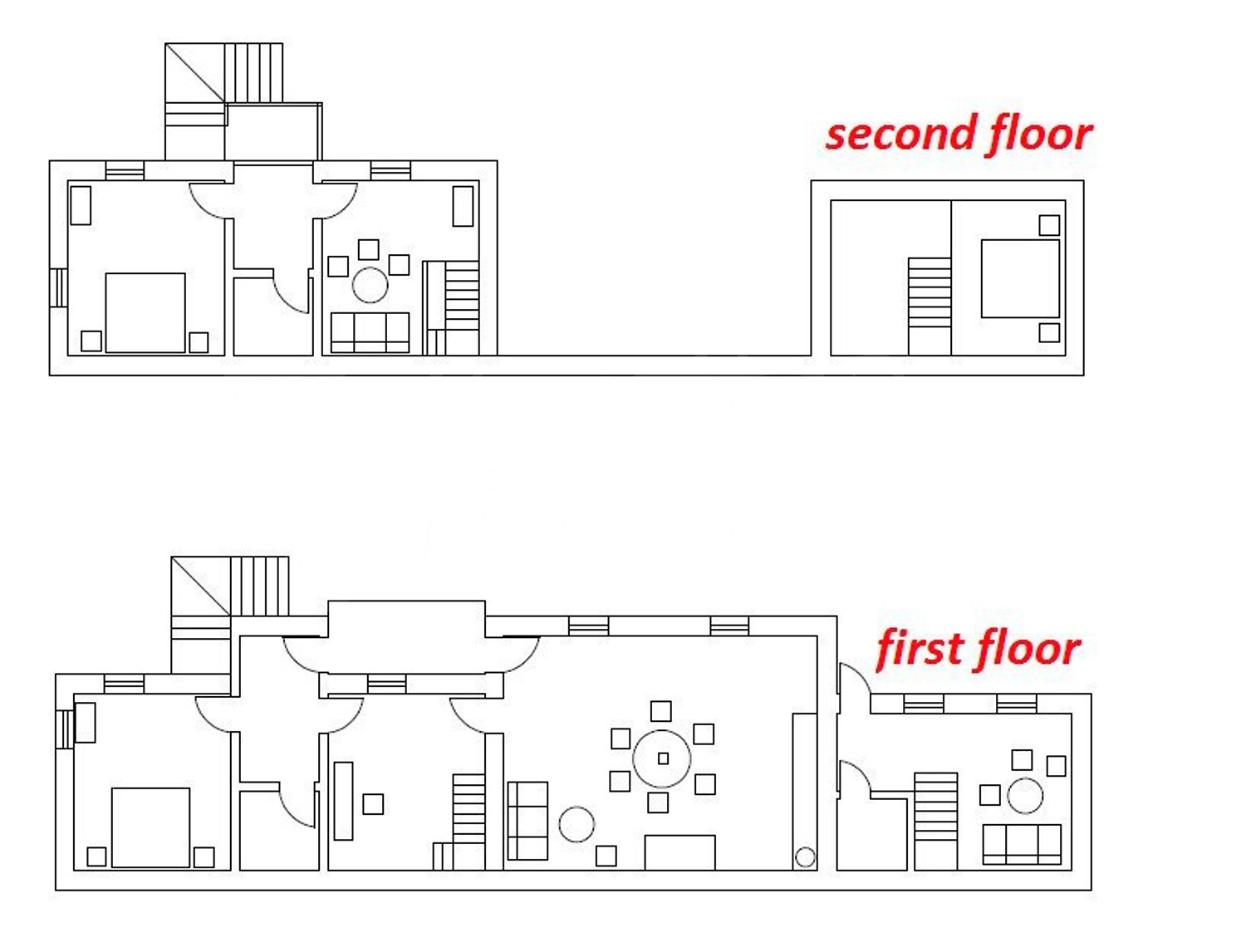 • Самостоятелен вход на първи етаж води до петата спалня, която е разположена на две нива. Към нея принадлежи баня с тоалетна.