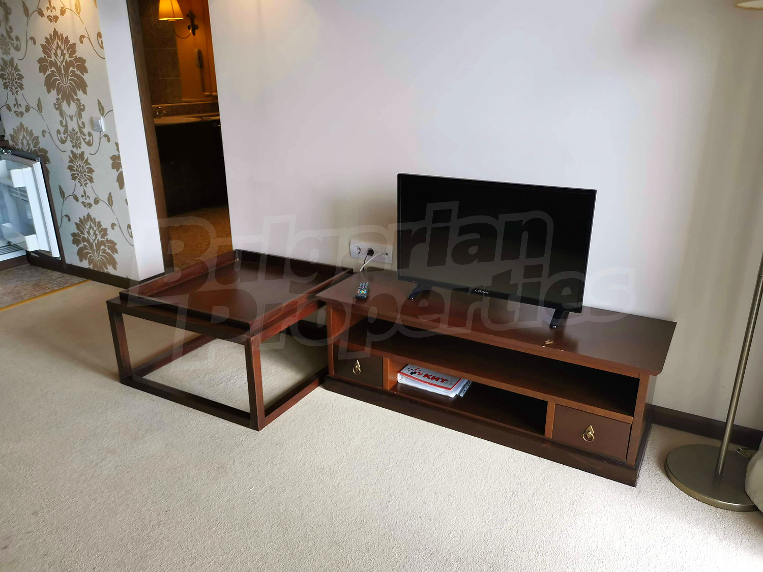 Жилището е завършено с подови настилки теракот (кухненски бокс) и мокет в хола и спалня, както и ПВЦ дограми. Апартаментът се предлага за продажба изцяло обзаведен и оборудван - чудесна възможност за инвестиция и отдаване под наем. Годишна такса поддръжка в комплекса – 15 евро/m2.