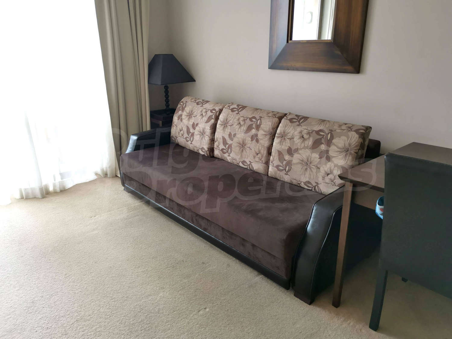 Жилището е завършено с подови настилки теракот (кухненски бокс) и мокет в хола и спалня, както и ПВЦ дограми. Апартаментът се предлага за продажба изцяло обзаведен и оборудван - чудесна възможност за инвестиция и отдаване под наем. Годишна такса поддръжка в комплекса – 15 евро/m2.