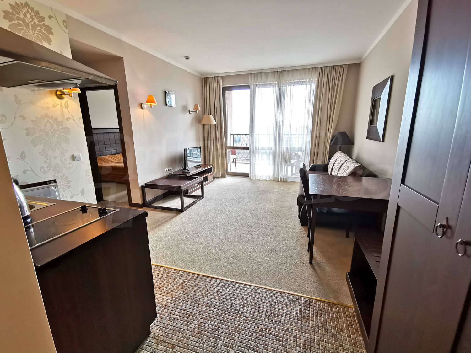 к.к. Слънчев брягВаканционен двустаен апартамент с гледка към морето и Слънчев бряг