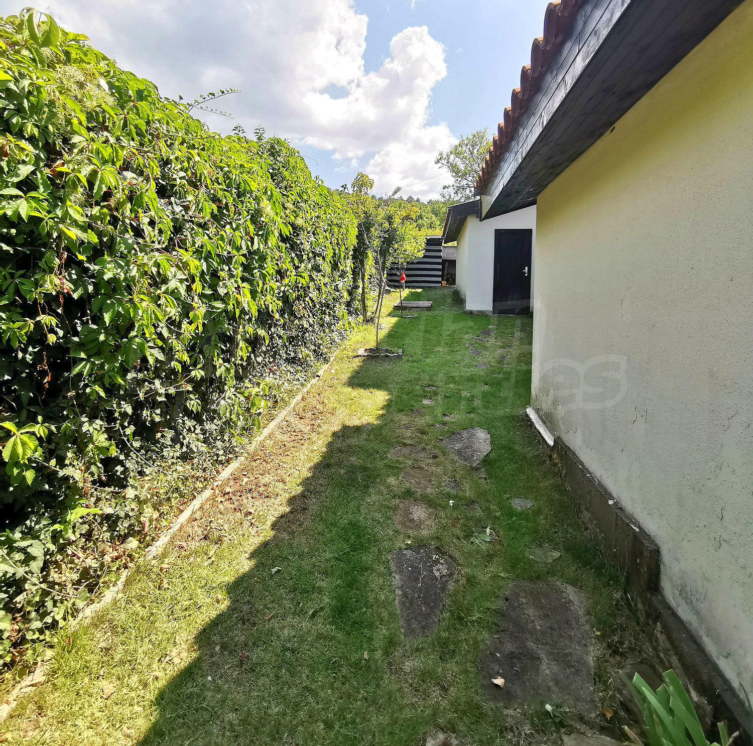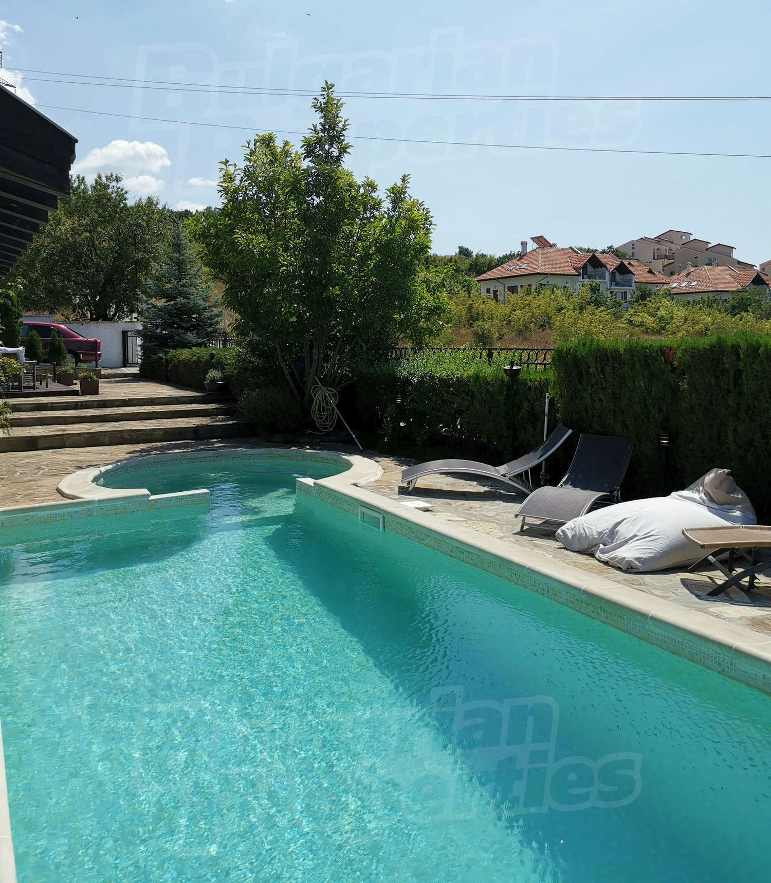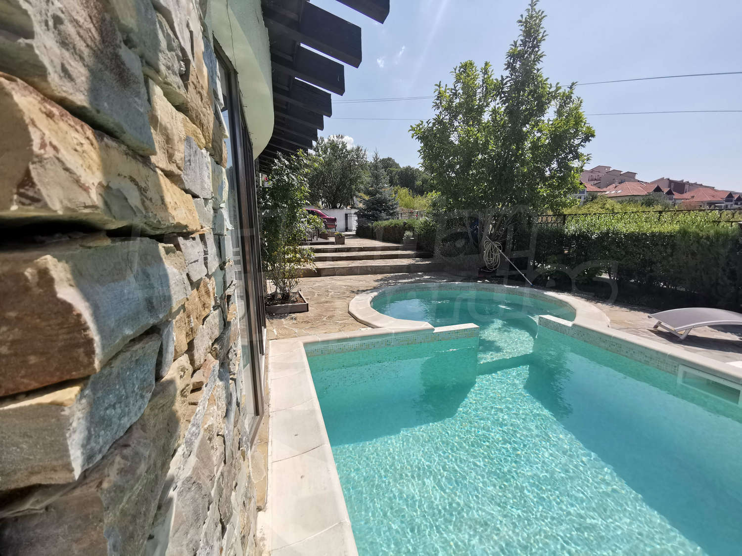 Двуетажната постройка е с площ 159.87 кв.м., поддържан и озеленен двор – 350 кв.м. Разполага с паркомясто, открит басейн и възможност за обособяване на шезлонг-зона, външно барбекю и кът за хранене на открито. В задната част на двора е разположена лятна кухня и мокро помещение за пералня.