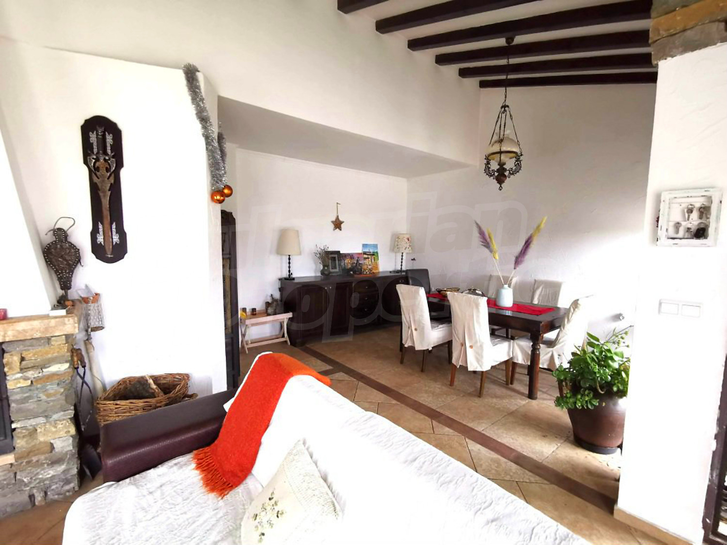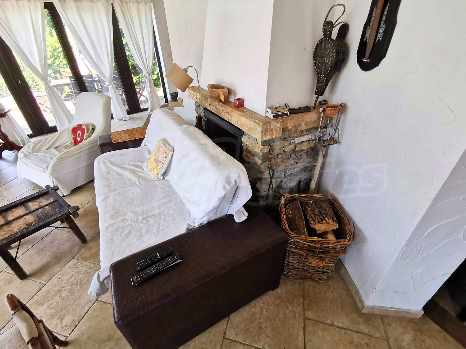 Отоплението е подсигурено от камина и климатици, подовите настилки са ламинат и теракот, дограмата е PVC.