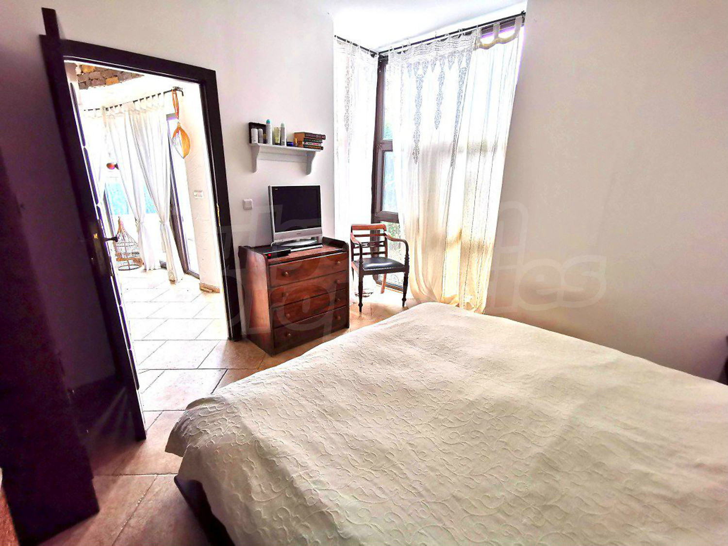 • Едната спалня има малка тераса с панорамна гледка към морето и плажовете на Слънчев бряг и Несебър;