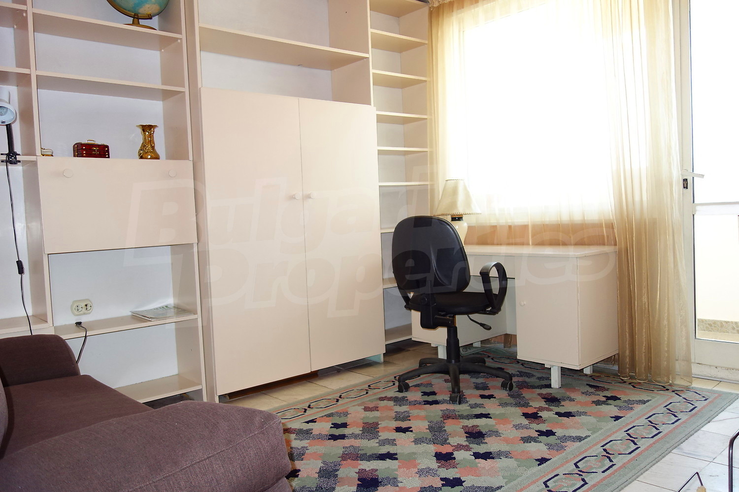 Апартаментът (85 кв.м.) има изложение юг/север и се състои от: