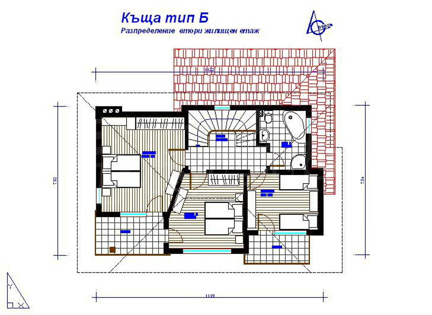 • 2-ри етаж - три спални, баня с тоалетна и голяма тераса.