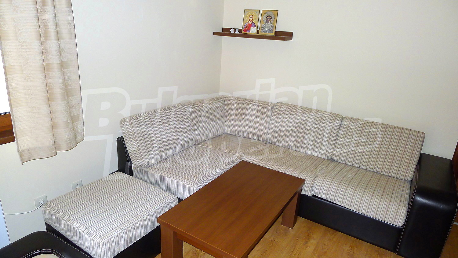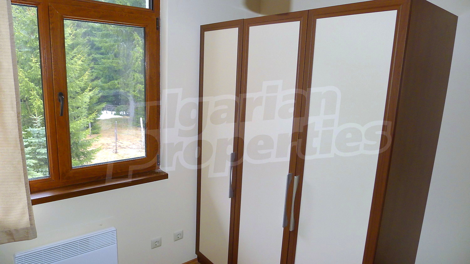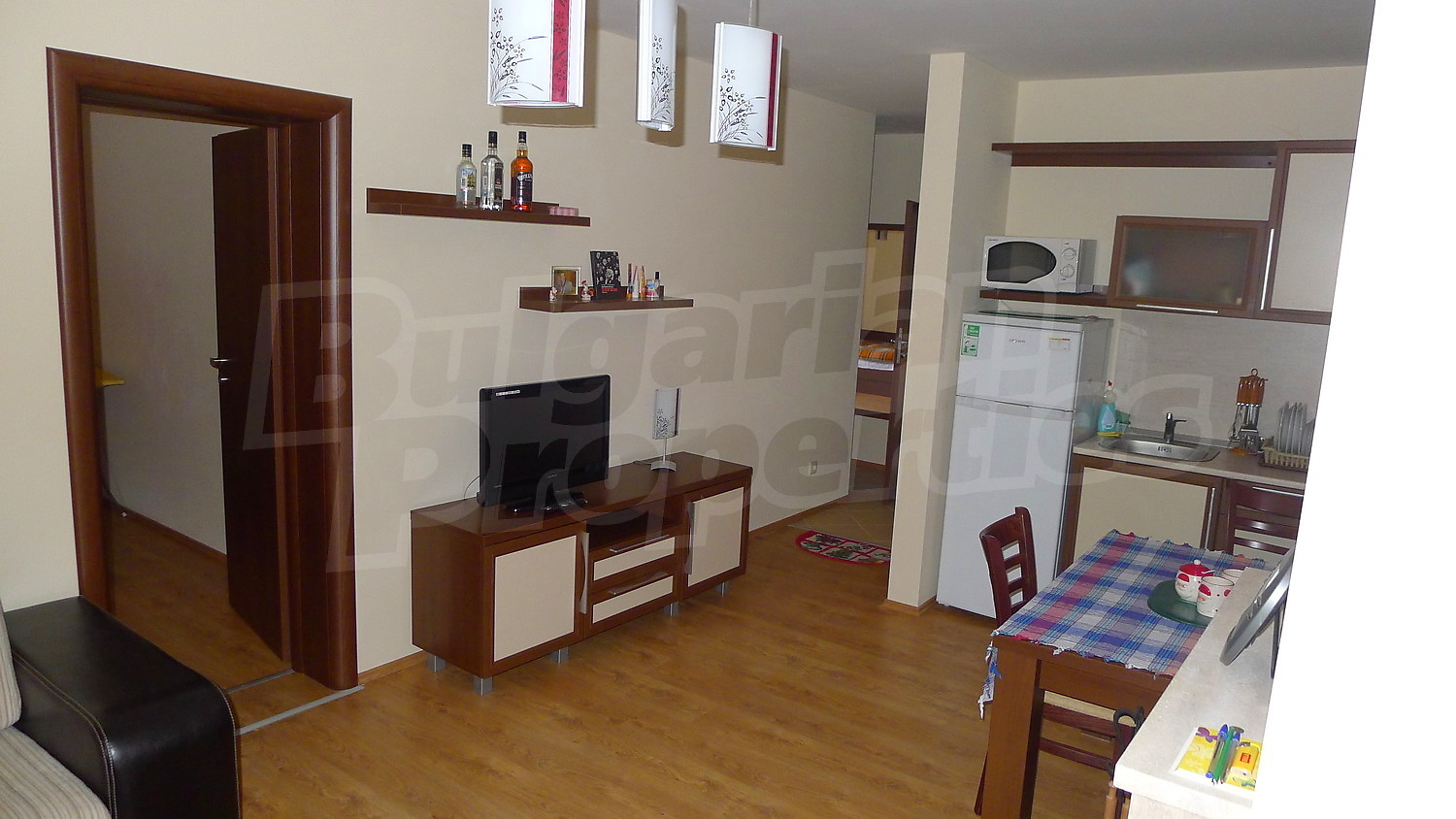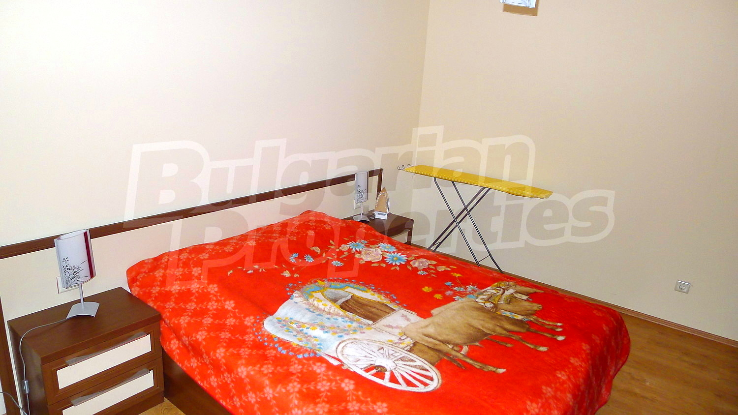 Апартаментът се продава напълно обзаведен. Кухненски бокс с кухненски шкафове, керамични котлони, хладилник, пералня, трапезна маса със столове, мека мебел, холна масичка, секция и телевизор. Първата спалня е с двойно легло и гардероб. Втората с две единични легла и гардероб. Напълно оборудвана баня с душ кабина.