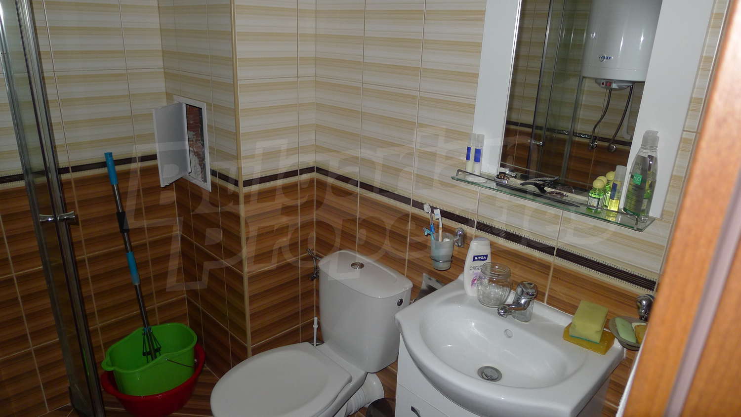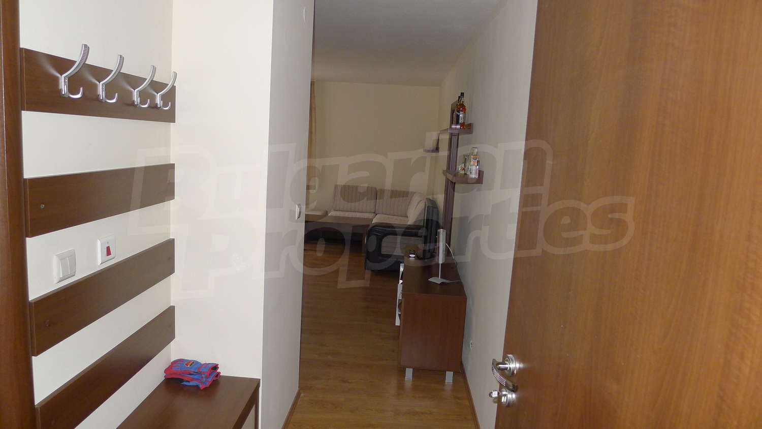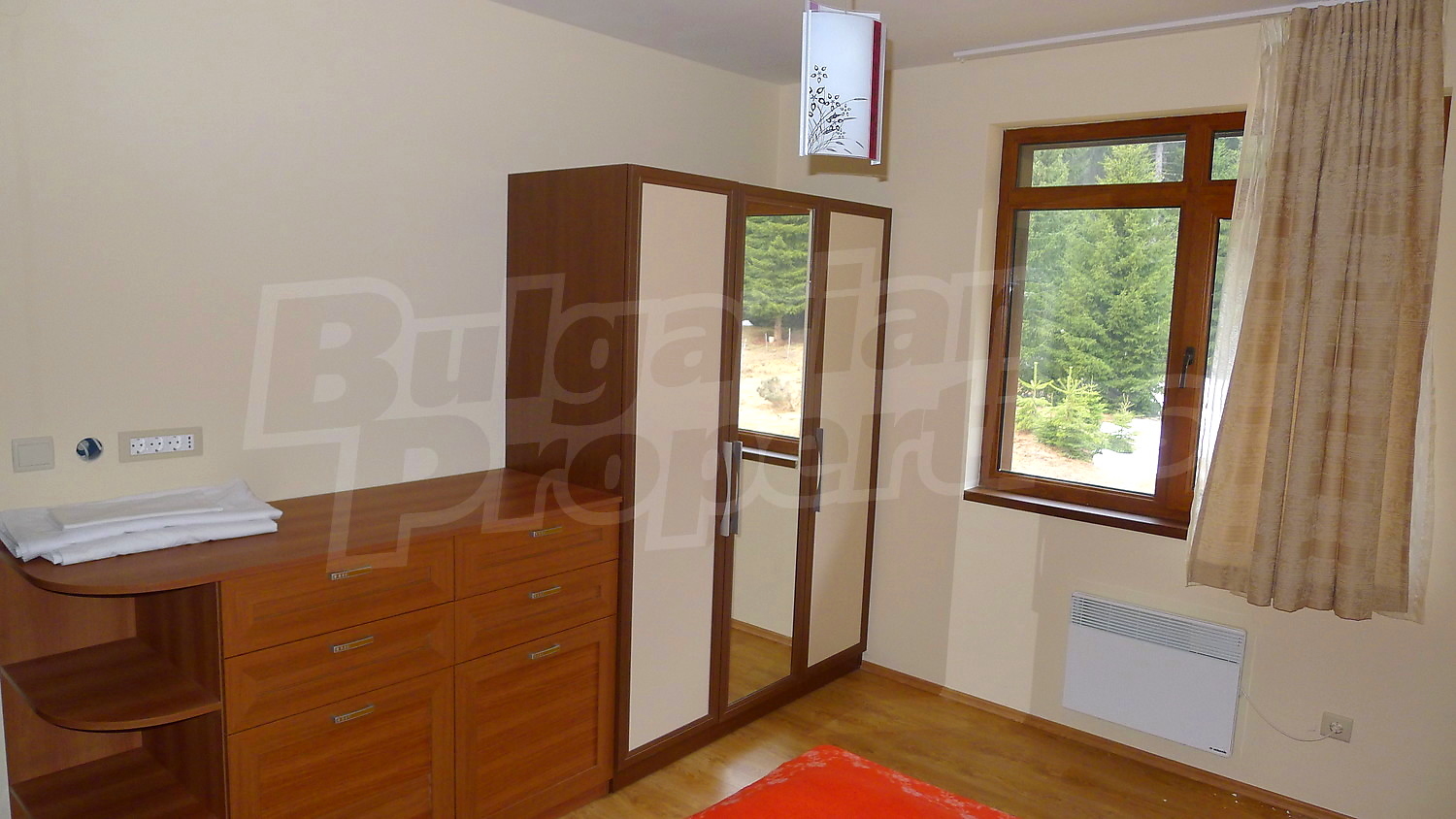Апартаментът се продава напълно обзаведен. Кухненски бокс с кухненски шкафове, керамични котлони, хладилник, пералня, трапезна маса със столове, мека мебел, холна масичка, секция и телевизор. Първата спалня е с двойно легло и гардероб. Втората с две единични легла и гардероб. Напълно оборудвана баня с душ кабина.