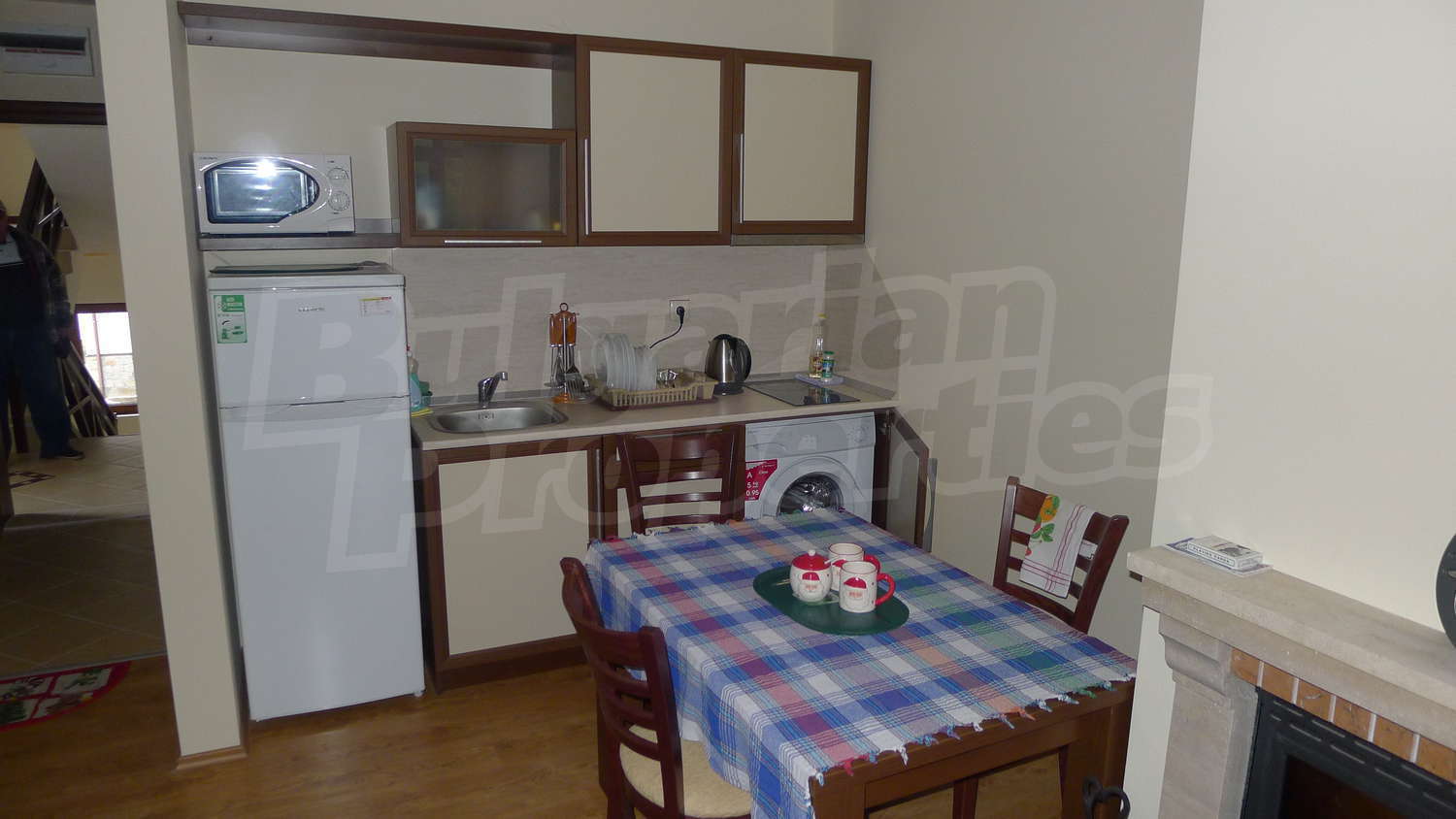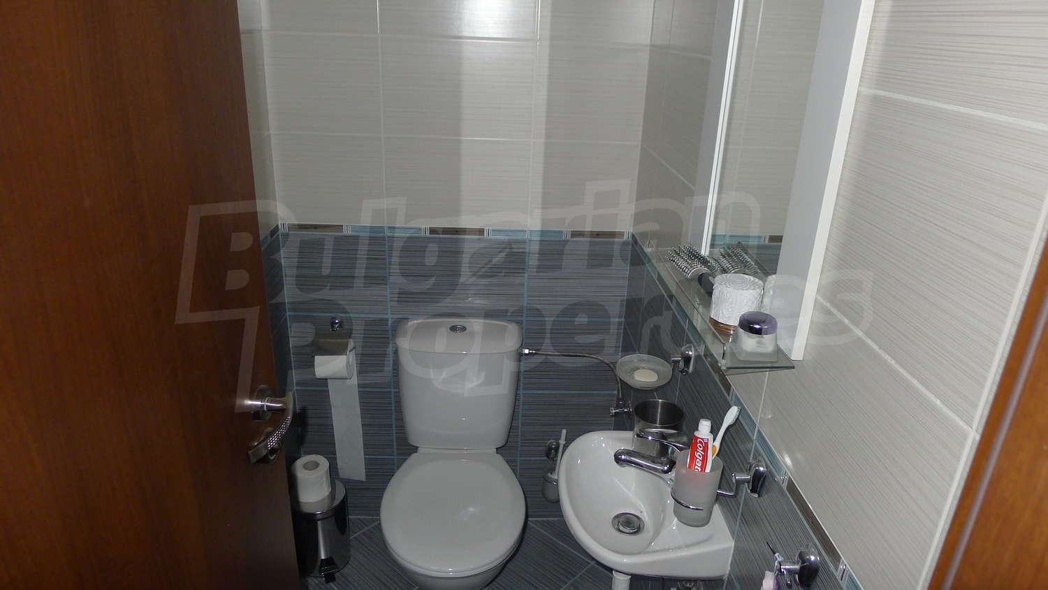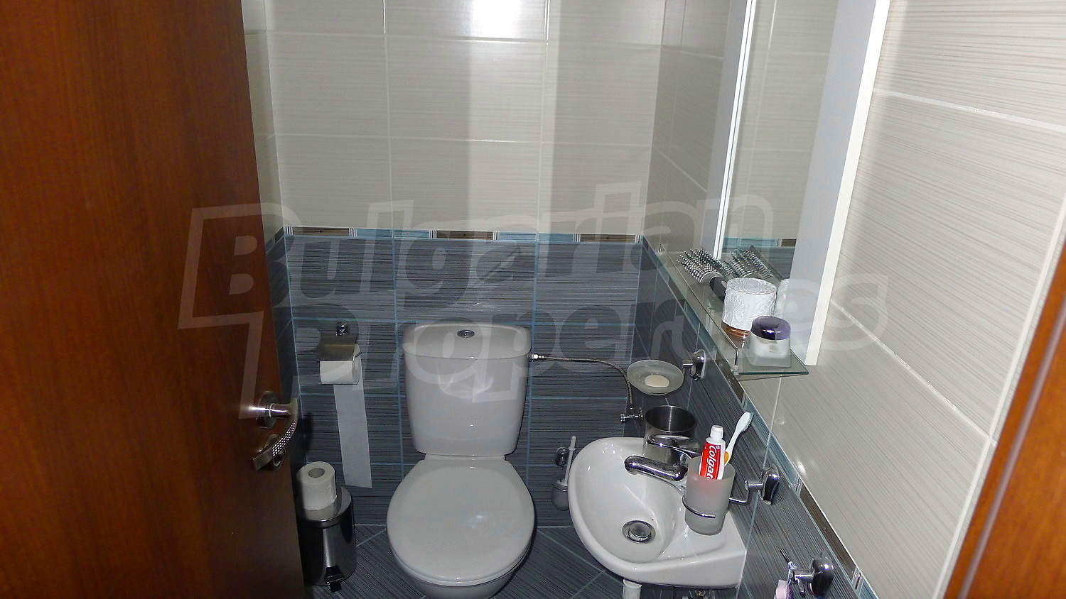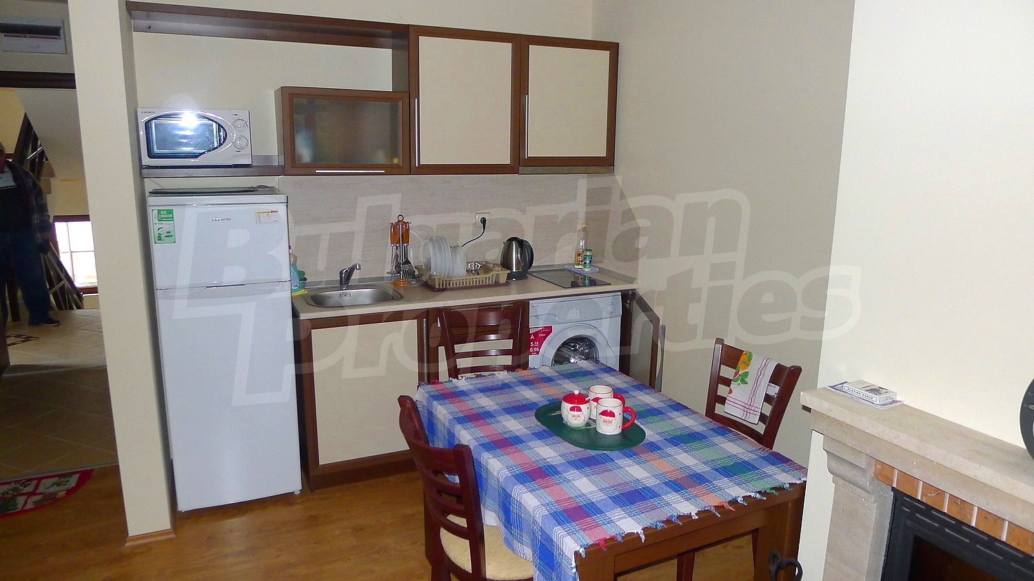 Апартаментът се продава напълно обзаведен. Кухненски бокс с кухненски шкафове, керамични котлони, хладилник, пералня, трапезна маса със столове, мека мебел, холна масичка, секция и телевизор. Първата спалня е с двойно легло и гардероб. Втората с две единични легла и гардероб. Напълно оборудвана баня с душ кабина.