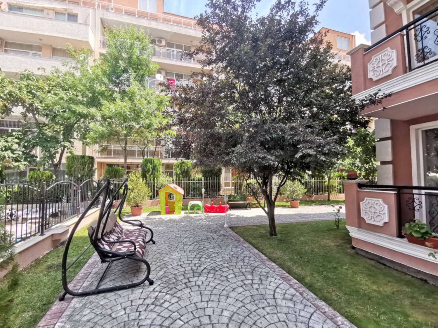Сградата се отличава с изчистен и стилен дизайн, отлично поддържани общи части и прекрасно оформена градина с алеи, озеленени пространства, люлки за почивка, както и външен басейн с шезлонг-зона.