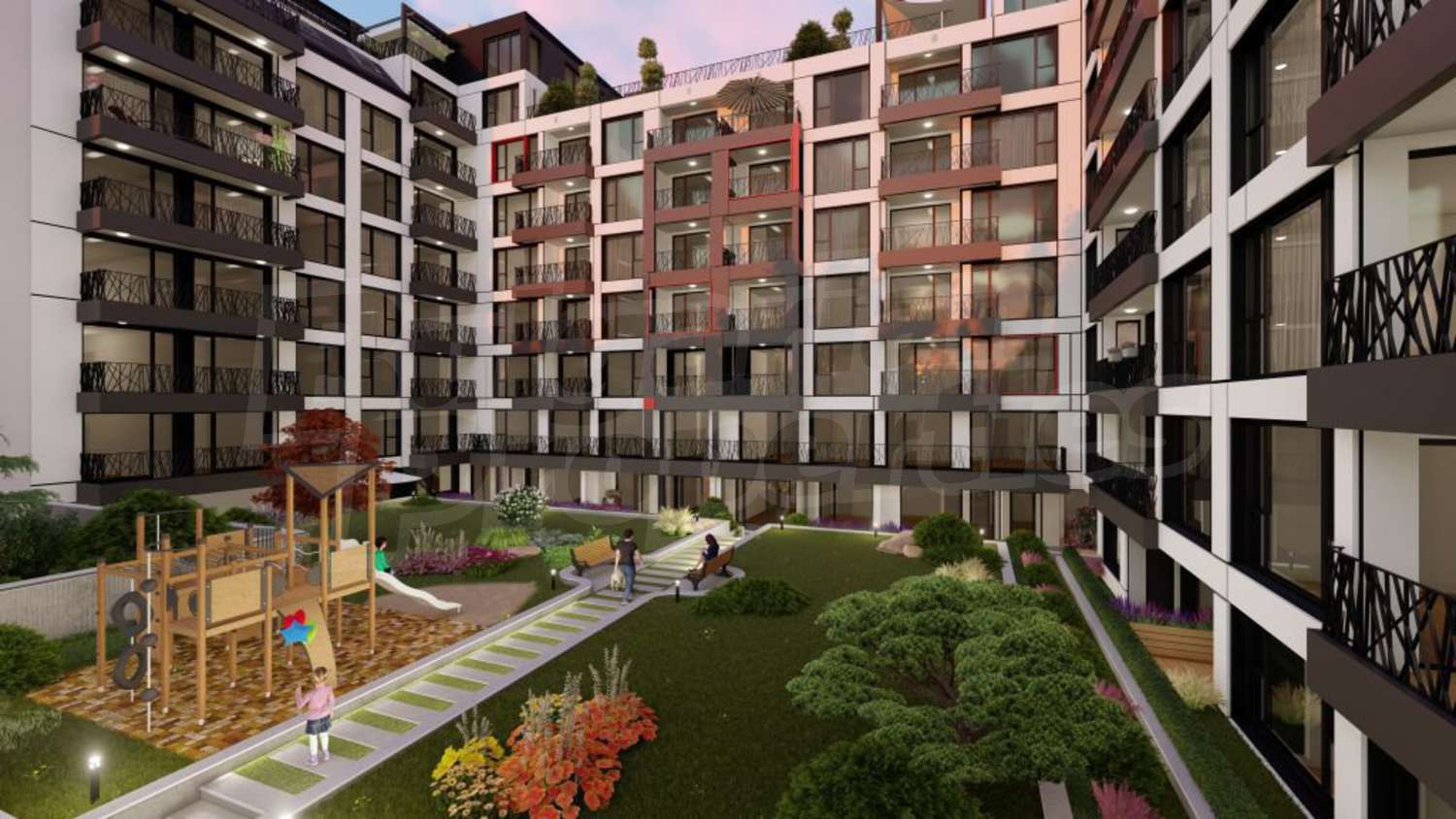 Сградата представлява комплекс от затворен тип, с градина, денонощно видеонаблюдение, охрана, собствен парк, детски кът.