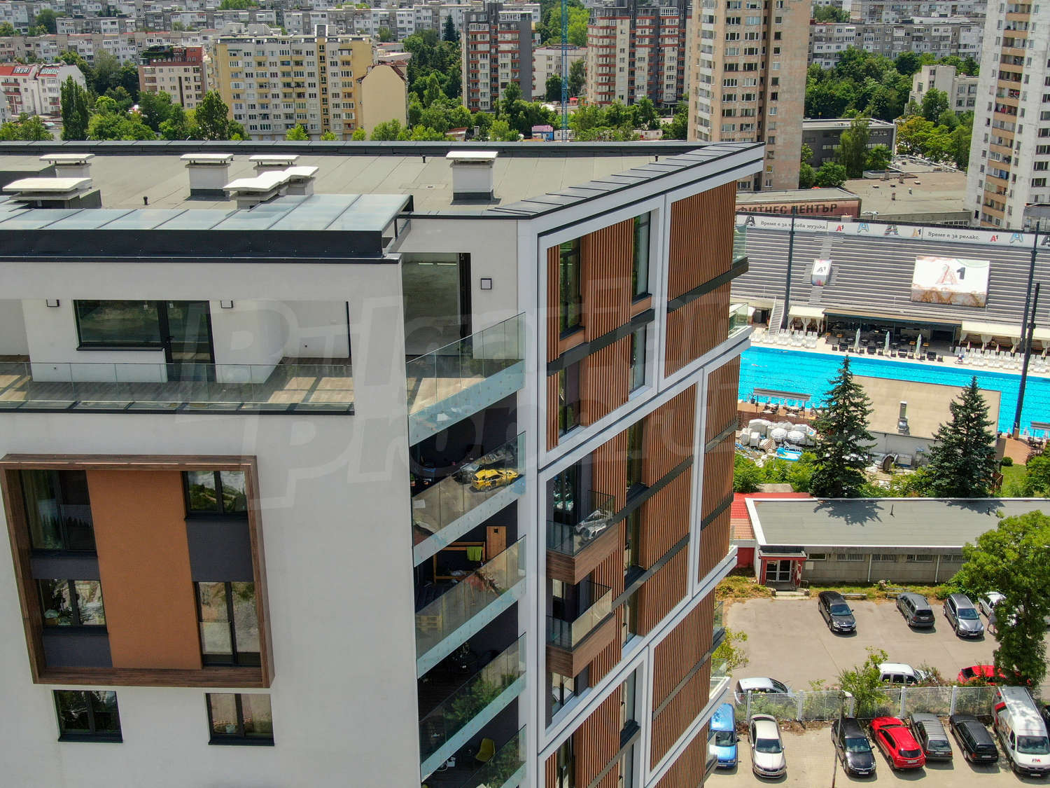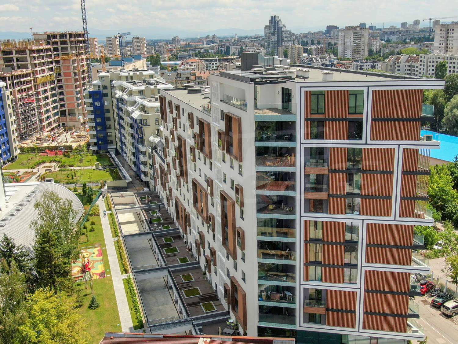 Kомплексът e разположен до тенис кортове и басейн в съчетание с вътрешното парково пространство, богата и висока дървесна растителност, заобиколена от живописни зелени площи, едновремено не далеч от центъра на града.
