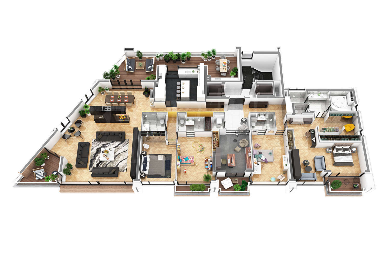 • 5 открити тераси, от които се разкриват чудесни гледки
