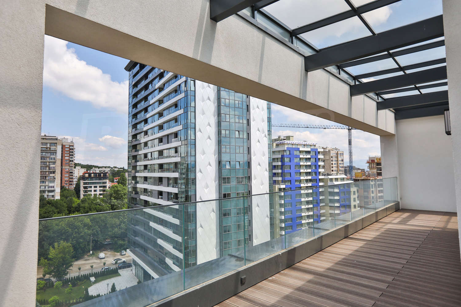 Имотът се намира на последен етаж в завършена луксозна нова сграда, изпълнена по всички съвременни стандарти за строителство. Сградата е разположена е в един от най-зелените и спокойни райони на София с отлична инфраструктура и транспортни комуникации. Фасадата се отличава с елегантен и иновативен дизайн, съвременен облик, който в съчетание с функционалността на жилищата превръщат имотите тук в синоним на дом мечта в сърцето на града. Не случайно сградата беше отличена с първа награда в ежегодния конкурс „Сграда на годината“.