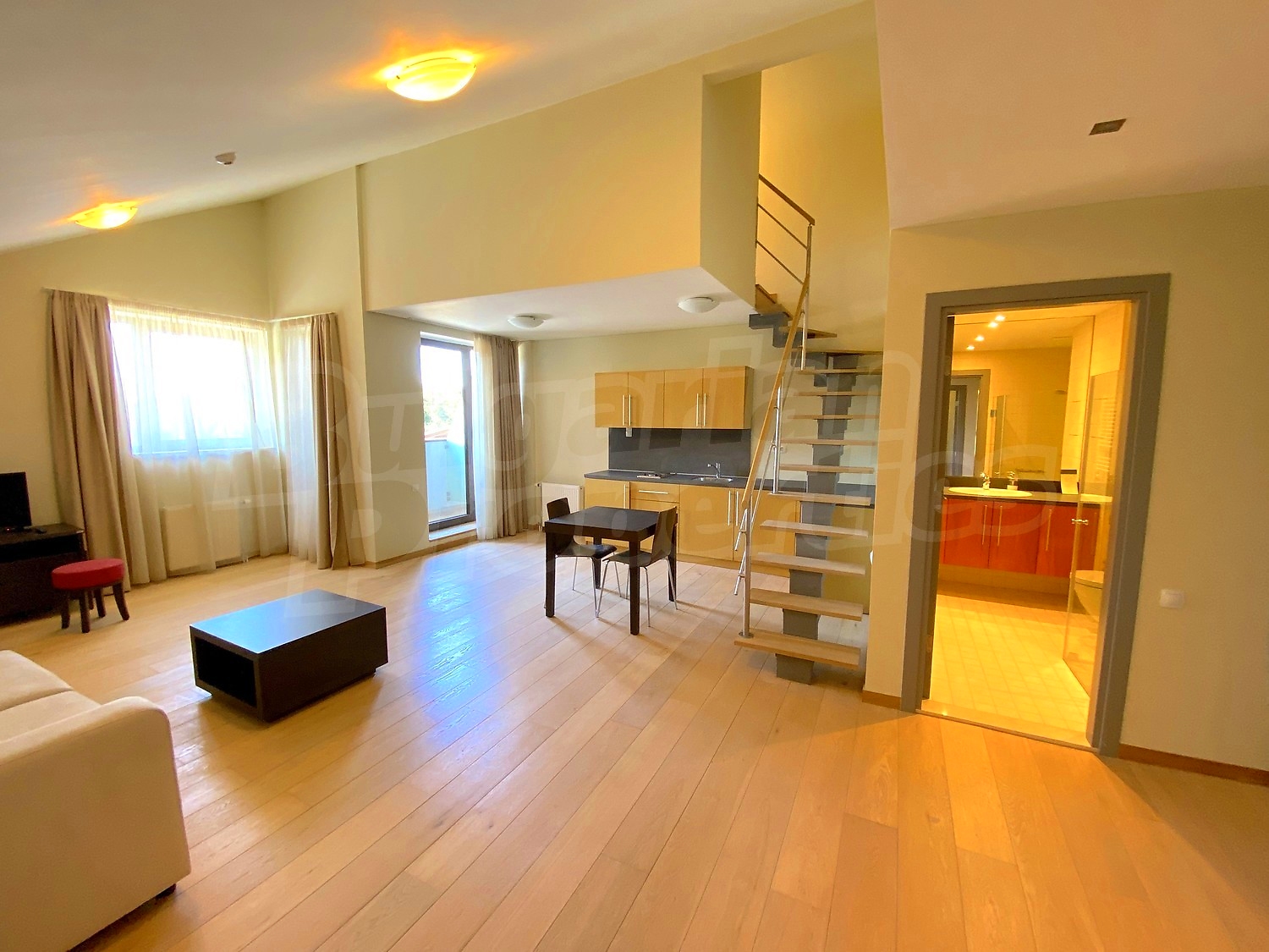 Апартаменти с две спални - тип мезонети с вътрешна стълба. Разположени са на 3-ия етаж и имат великолепна гледка към ски пистите и гората. Тези апартаменти разполагат с просторни всекидневни, самостоятелна баня с вана, голяма спалня на първия етаж и още една спалня на второто ниво на апартамента.