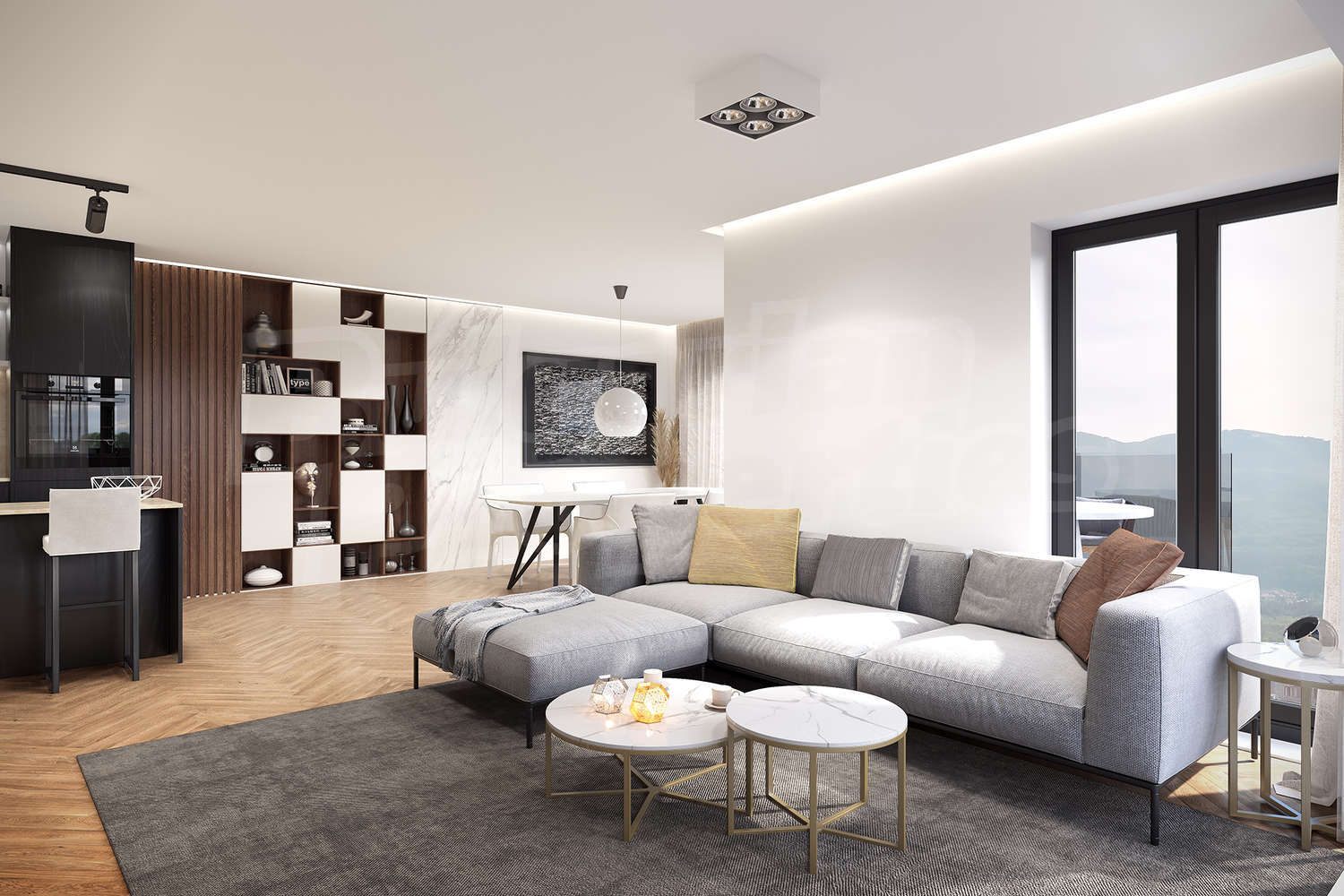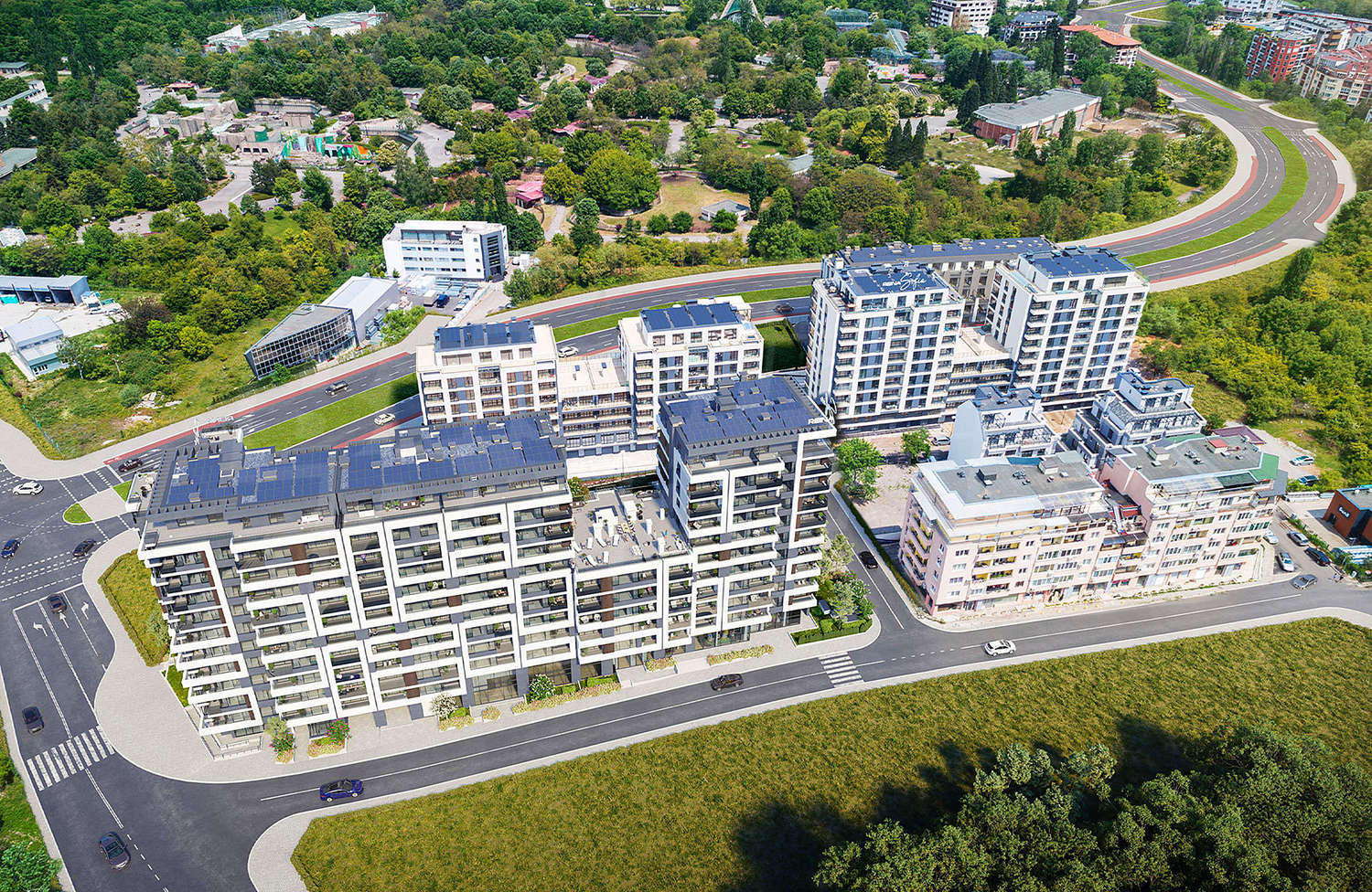 Апартаменти – 159 апартамента разпределени в пет входа. Апартаментите се отличават с функционални и светли пространства с индивидуален характер за пълноценен начин на живот в забързания град.