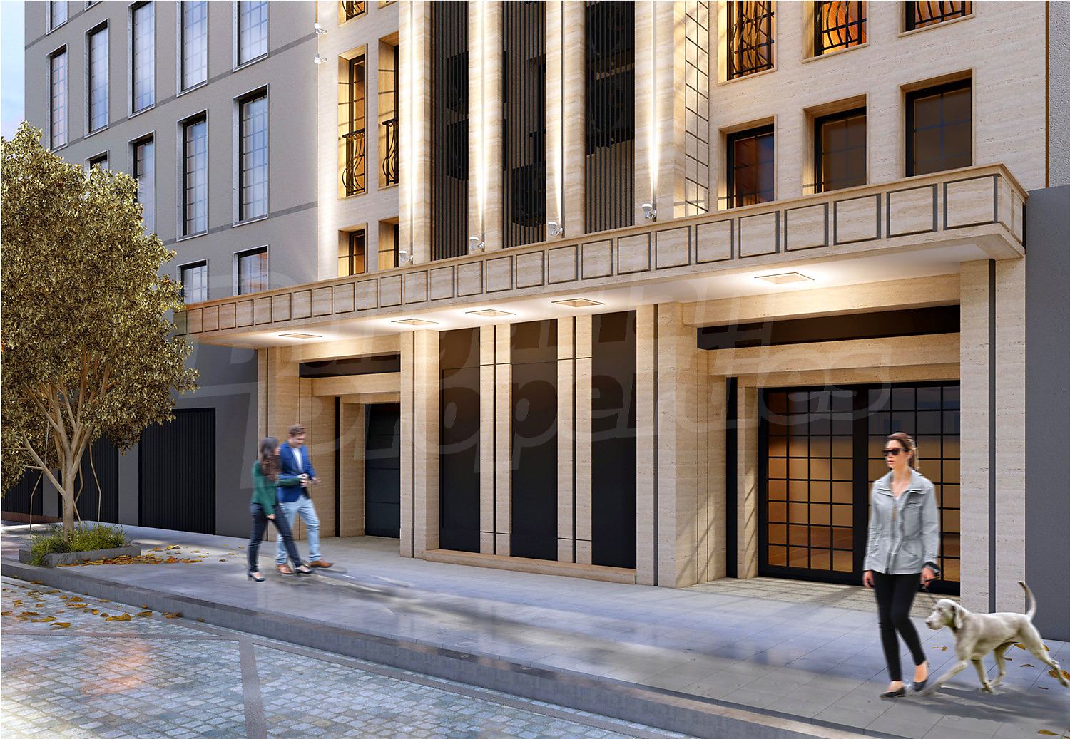 Успешно въплъщава в дизайна си класическа архитектура и модерно излъчване. Разположена между два калкана, сградата е пететажна с две подпокривни нива и един подземен етаж. Разполага с тринадесет броя апартаменти с разнообразни разпределения. В подземния етаж са предвидени складови помещения, пет броя паркоместа и две гаражни клетки, а на първия етаж - три гаражни клетки и три наземни паркоместа. Вертикалната комуникация се състои от асансьор и стълбище, обслужващи всички нива. Основните фасади на сградата са предвидени с висококачествени материали - различно текстурирани плочи от травертин и парапети от ковано желязо с естествена патина.