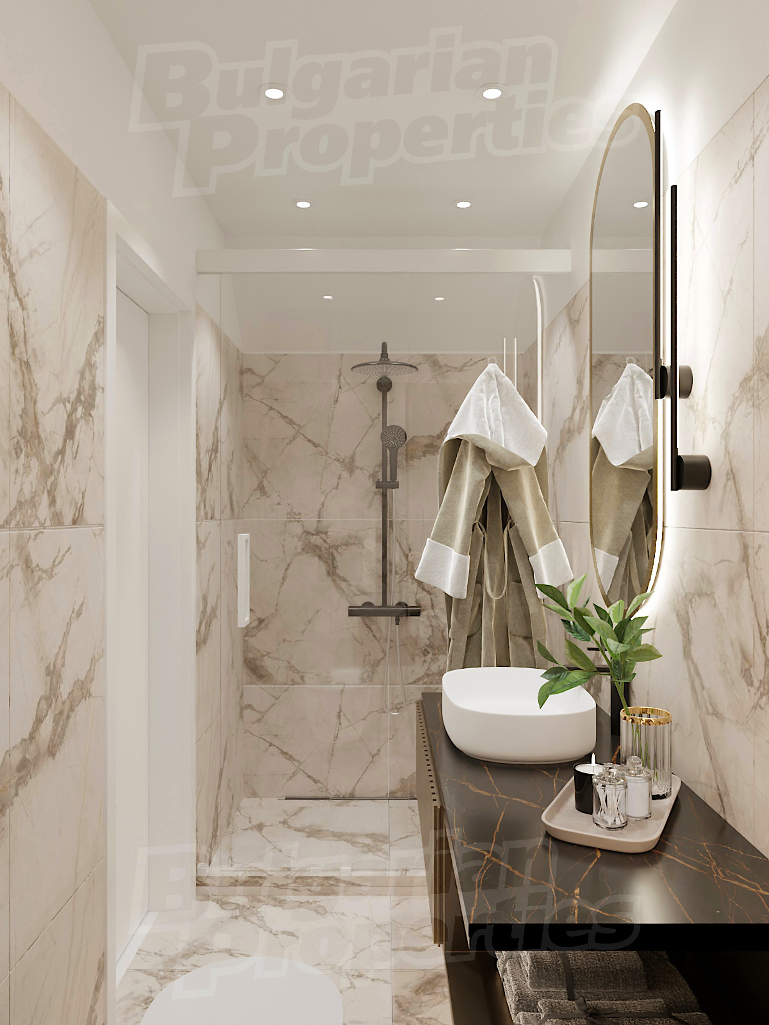 Апартаментът се издава на шпакловка и замазка с блиндирана входна врата от висок клас. Има опция за довършване на избрания от вас апартамент до ключ.