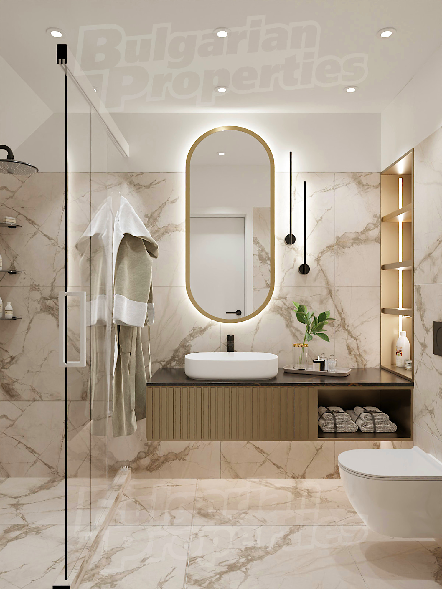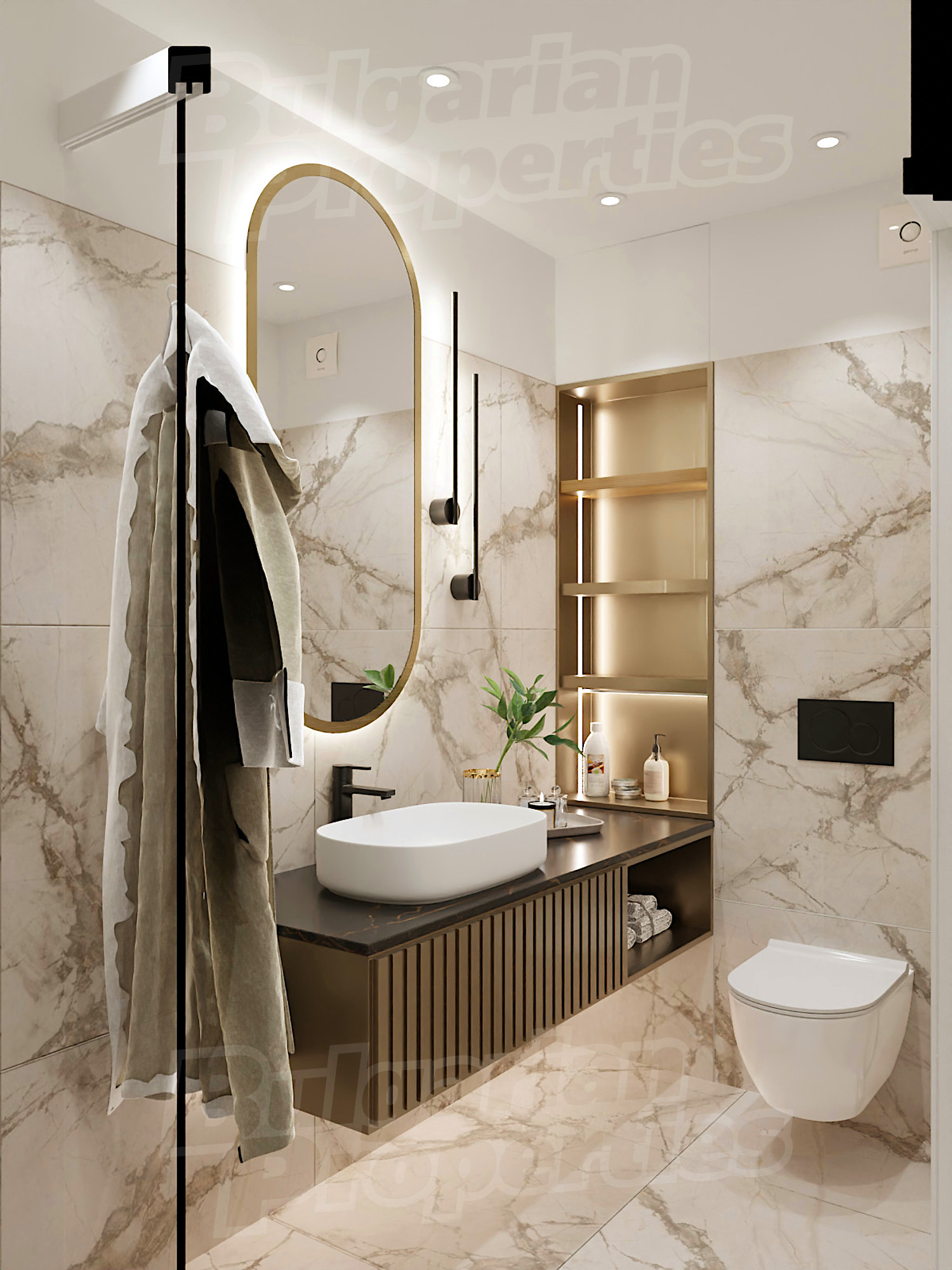 Апартаментът се издава на шпакловка и замазка с блиндирана входна врата от висок клас. Има опция за довършване на избрания от вас апартамент до ключ.