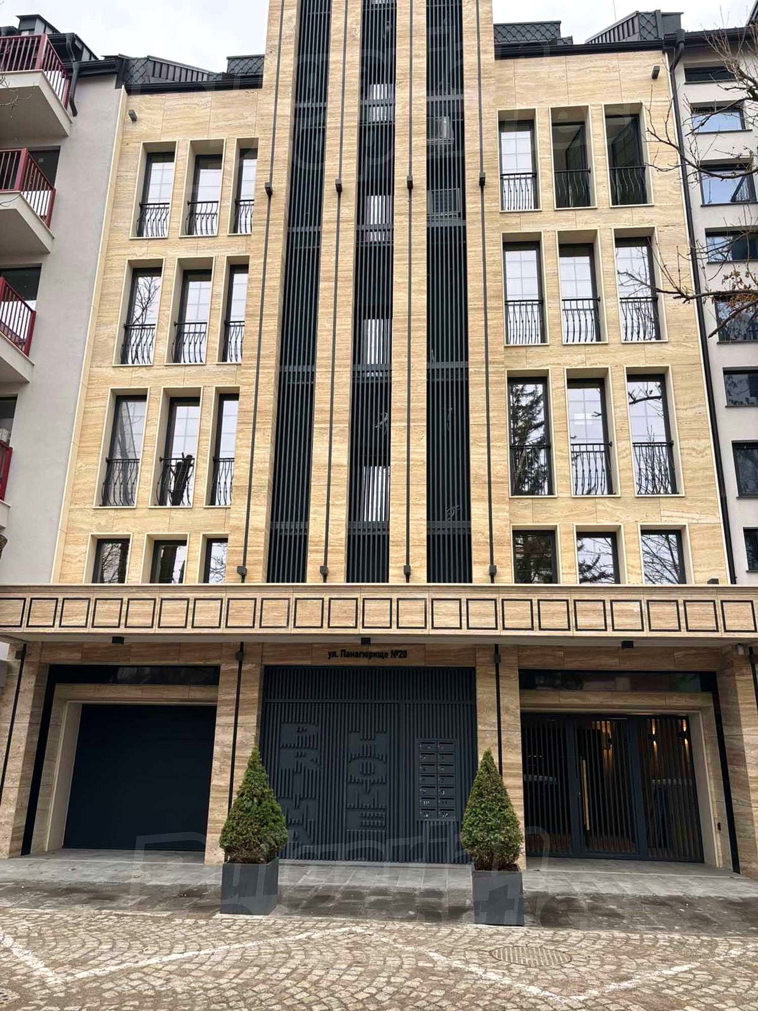 Успешно въплъщава в дизайна си класическа архитектура и модерно излъчване. Разположена между два калкана, сградата е пететажна с две подпокривни нива и един подземен етаж. Разполага с тринадесет броя апартаменти с разнообразни разпределения. В подземния етаж са предвидени складови помещения, пет броя паркоместа и две гаражни клетки, а на първия етаж - три гаражни клетки и три наземни паркоместа. Вертикалната комуникация се състои от асансьор и стълбище, обслужващи всички нива. Основните фасади на сградата са предвидени с висококачествени материали - различно текстурирани плочи от травертин и парапети от ковано желязо с естествена патина.