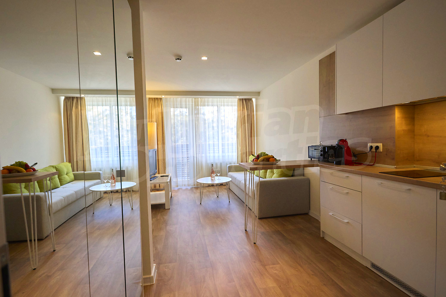 Жилищата се издават завършени до ключ, с оборудвани бани и готови за обзавеждане: