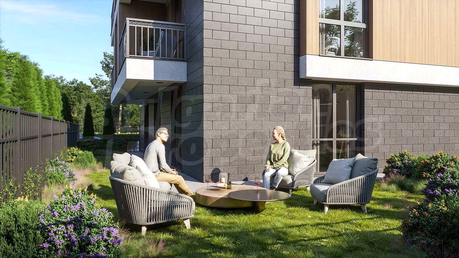 • Входно фоайе и стълбища – с настилка и стъпала от естествен камък, алуминиев парапет и латекс