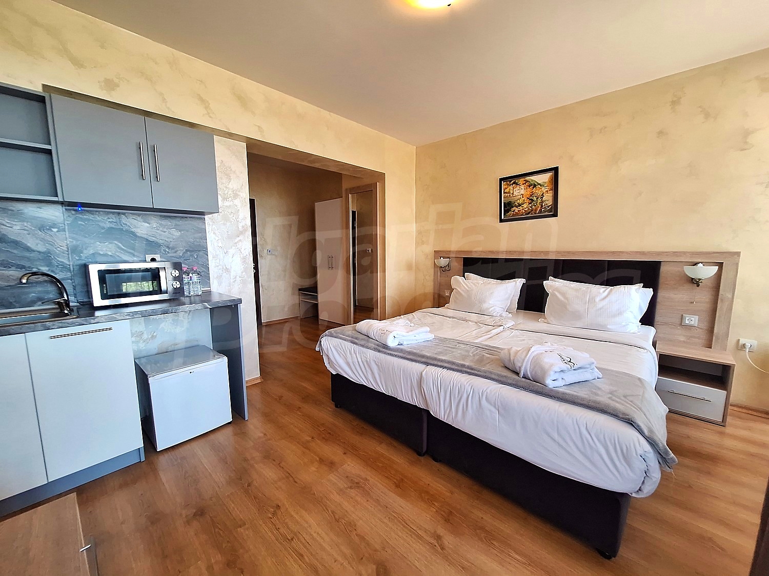 Студиото е с изцяло обновено обзавеждане и е след освежителен ремонт. Имотът е подходящ както за целогодишно използване, така и за отдаване под наем или ползване като ваканционен имот.
