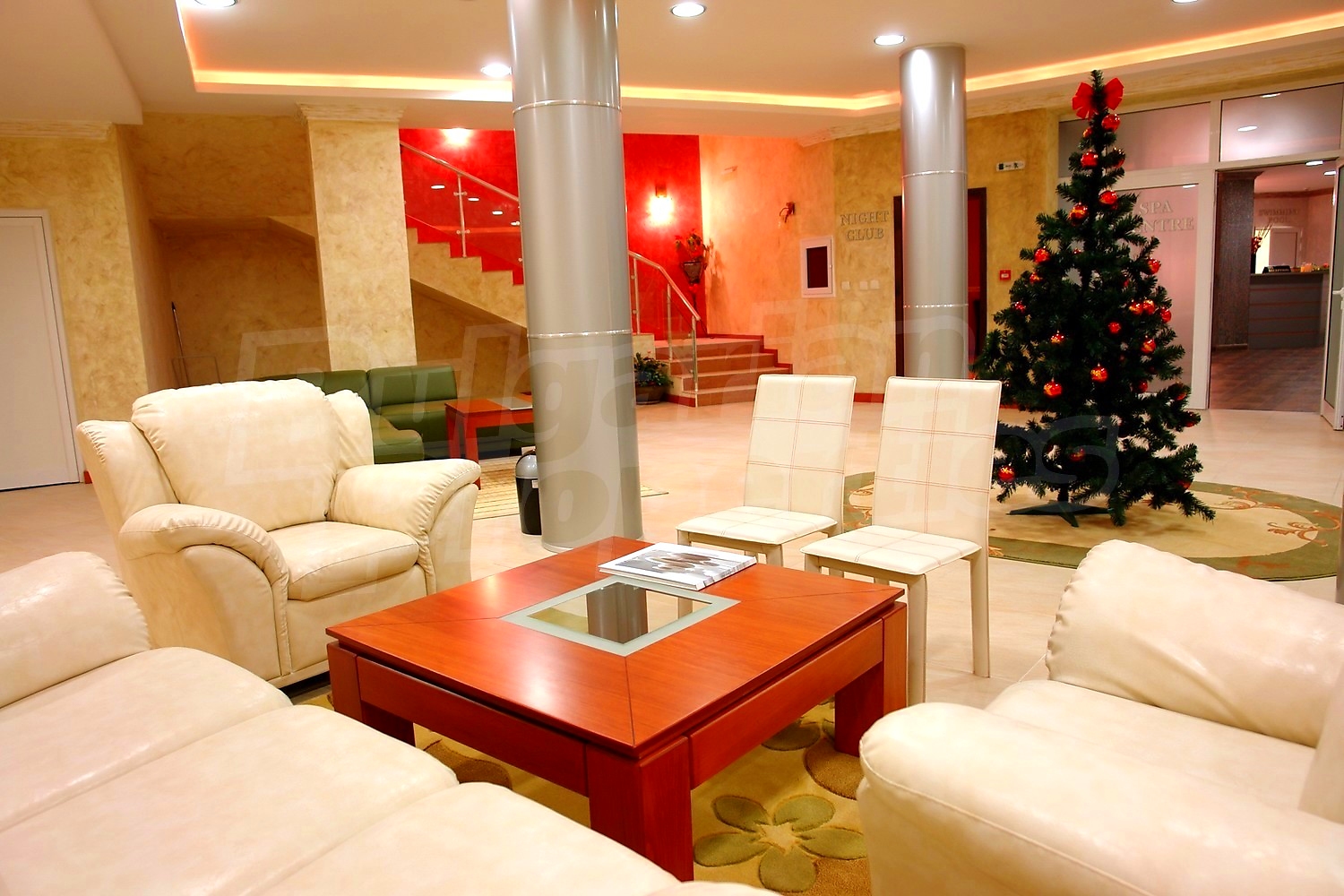 • Модерен СПА център с турска, финландска, каменна и парна баня, зали за масаж, солариум и сауна, романтично джакузи за двама, кътове за почивка, съблекални и душове;