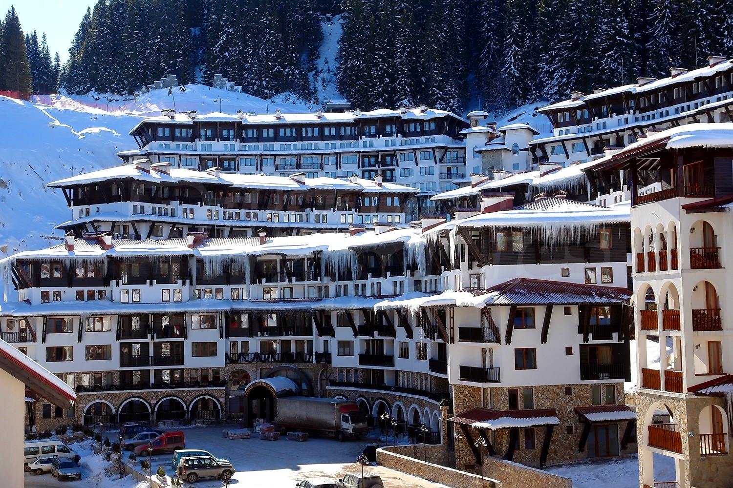 Комплексът се състои от 5 амфитеатрално разположени сгради, свързани помежду си с ескалатори, с топла връзка до ски пистата. Предлага няколко заведения за хранене и множество опции за развлечение, спорт и отдих. Характеризира се с уникална архитектура, добро вътрешно разпределение и множество модерни услуги: