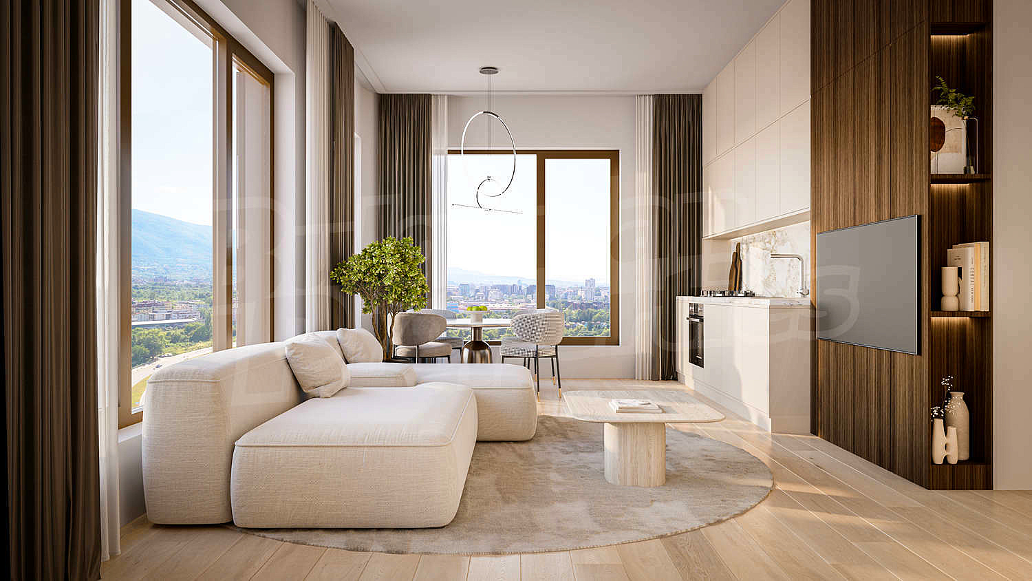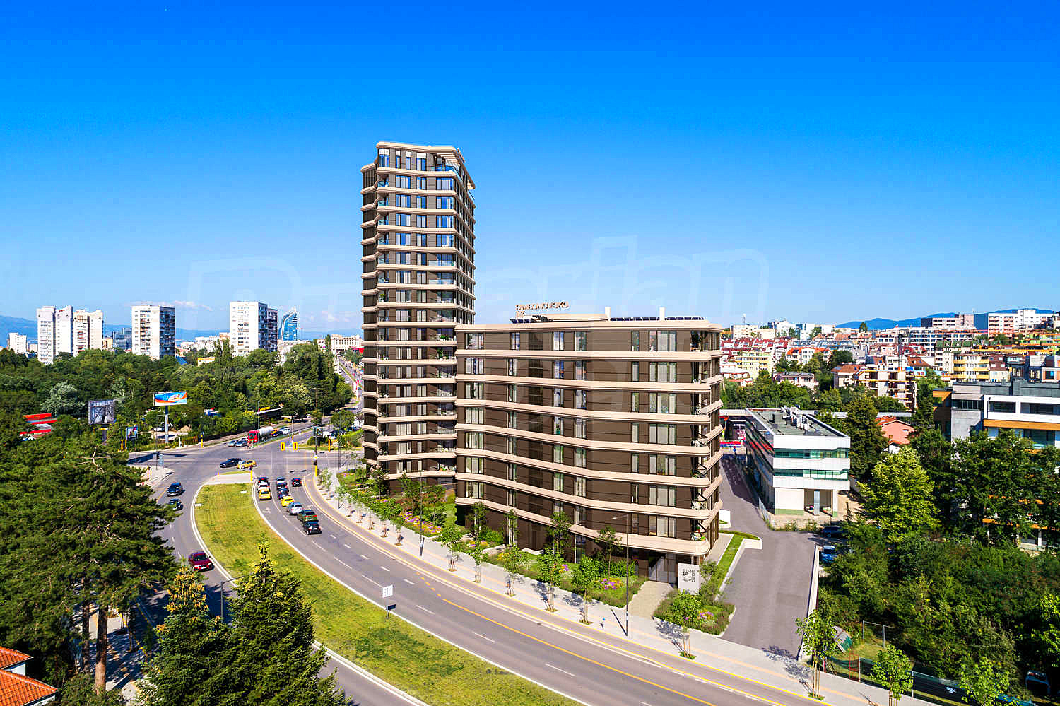 Изключителен комплекс ново строителство с отлична локация, гледки към Витоша и бърз достъп до удобен транспорт, спортни центрове, търговски център, болници, паркове, училища и др. Впечатляващ проект, включващ две хармонично допълващи се сгради, обединени от обширно зелено пространство, модерни апартаменти с функционални разпределения, изградени с висококачествени материали. Модерен екстериор и фасади с обилно естествено осветление, благодарение на високата степен на остъкленост.