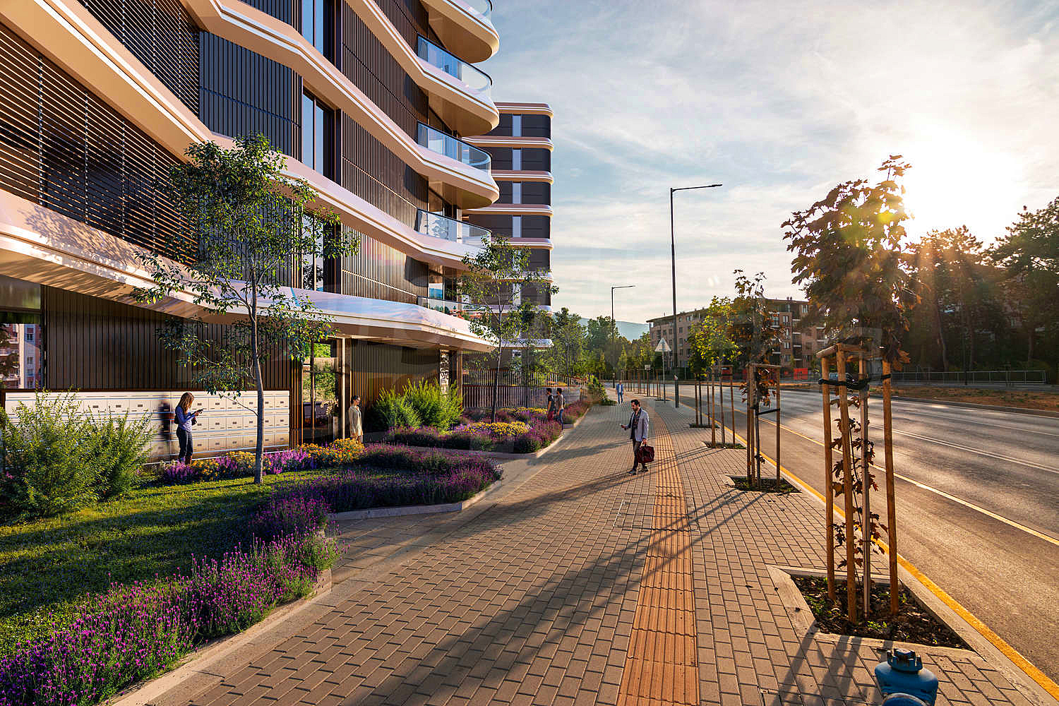 Паркоустройственият проект предвижда иглолистни видове и широколистни дървета, цъфтящи храсти с дълготрайно време на цъфтеж и декоративни треви, осигуряващи естествена среда и комфорт на живущите в комплекса.
