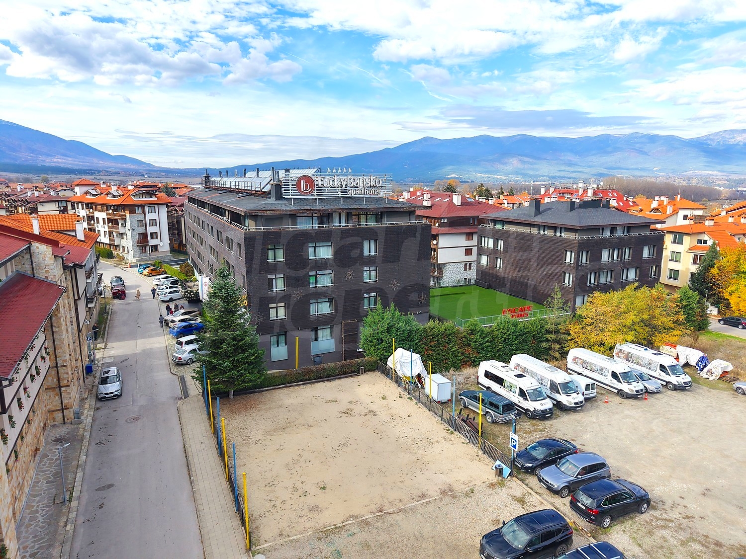 Днешното ни предложение включва светло, южно студио в апарт-хотел Лъки Банско, с гледка към Пирин Планина. Хотелът предлага целогодишно всички удобства и услуги за пълноценна почивка, 5-звездно обслужване, включително превоз до ски съоръженията по време на ски сезона или летни екскурзии до близки дестинации или забележителности. Намира се на 5 минути пеша от центъра на ски курорт Банско, близо до хипермаркет и до международния път за Драма/Кавала (Гърция).