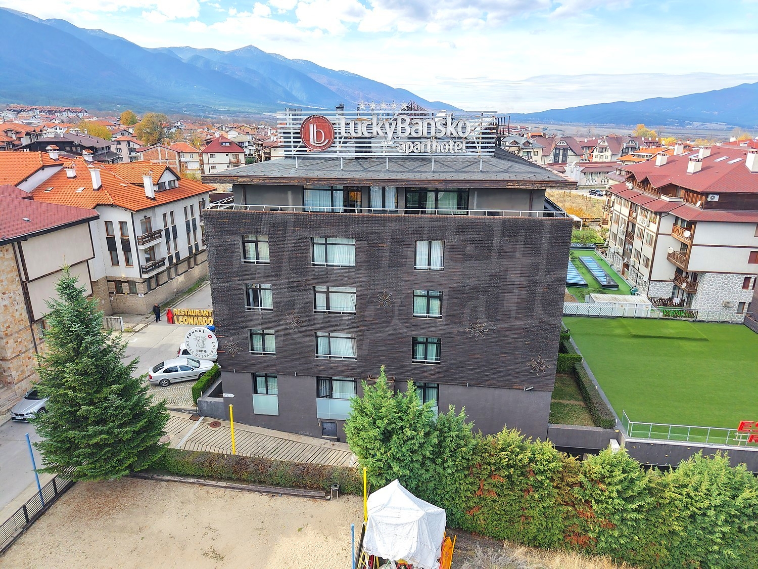 Комплекс Лъки Банско е разположен в близост до центъра на града, до ул. Глазне и реката, до Гранд Хотел Банско, в тих и спокоен район. На територията на Lucky Bansko може да се възползвате от модерни услуги и удобства, включително стилен ресторант с разнообразна и вкусна храна, конферентна зала със 130 места, открит и закрит паркинг, лоби бар, бар-билярд, закрит басейн, SPA и фитнес център, няколко къта за забавления на децата с детегледачки за по-малките. Подсигурен е безплатен интернет в целия хотел и менажираща компания, с която може да отдавате имота под наем.