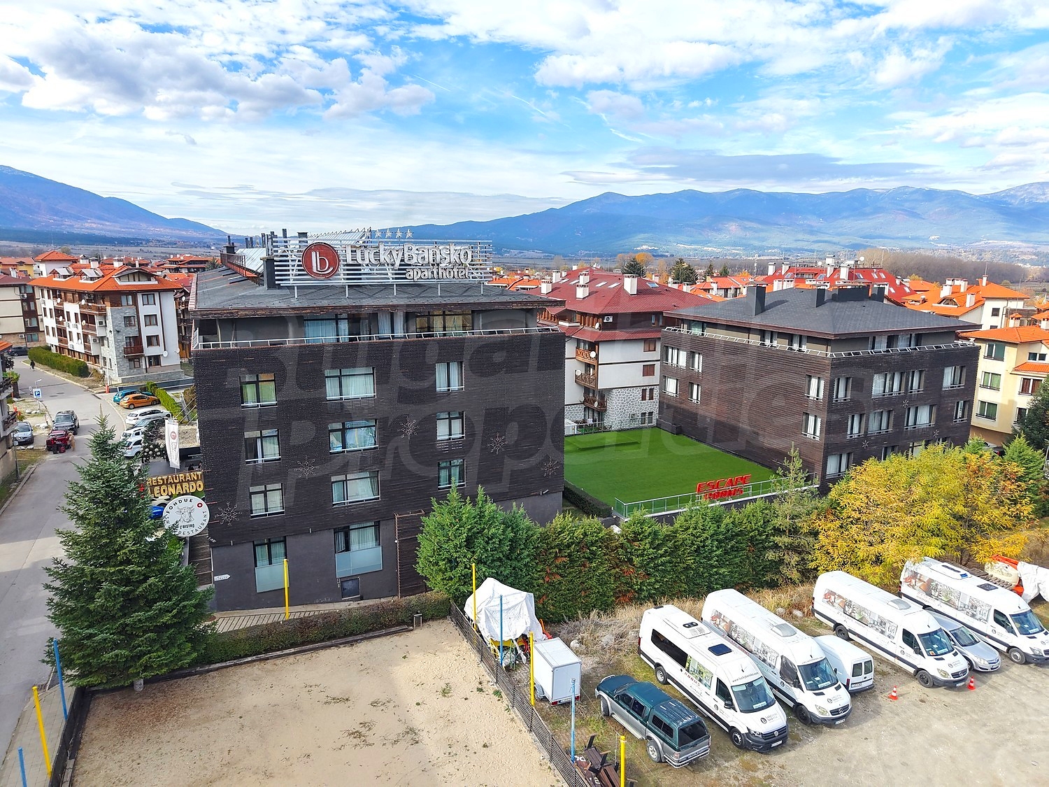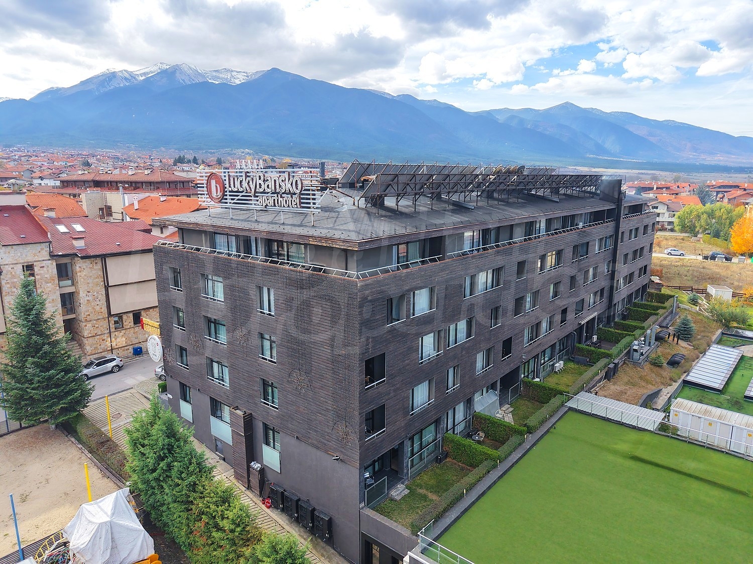 Комплекс Лъки Банско е разположен в близост до центъра на града, до ул. Глазне и реката, до Гранд Хотел Банско, в тих и спокоен район. На територията на Lucky Bansko може да се възползвате от модерни услуги и удобства, включително стилен ресторант с разнообразна и вкусна храна, конферентна зала със 130 места, открит и закрит паркинг, лоби бар, бар-билярд, закрит басейн, SPA и фитнес център, няколко къта за забавления на децата с детегледачки за по-малките. Подсигурен е безплатен интернет в целия хотел и менажираща компания, с която може да отдавате имота под наем.