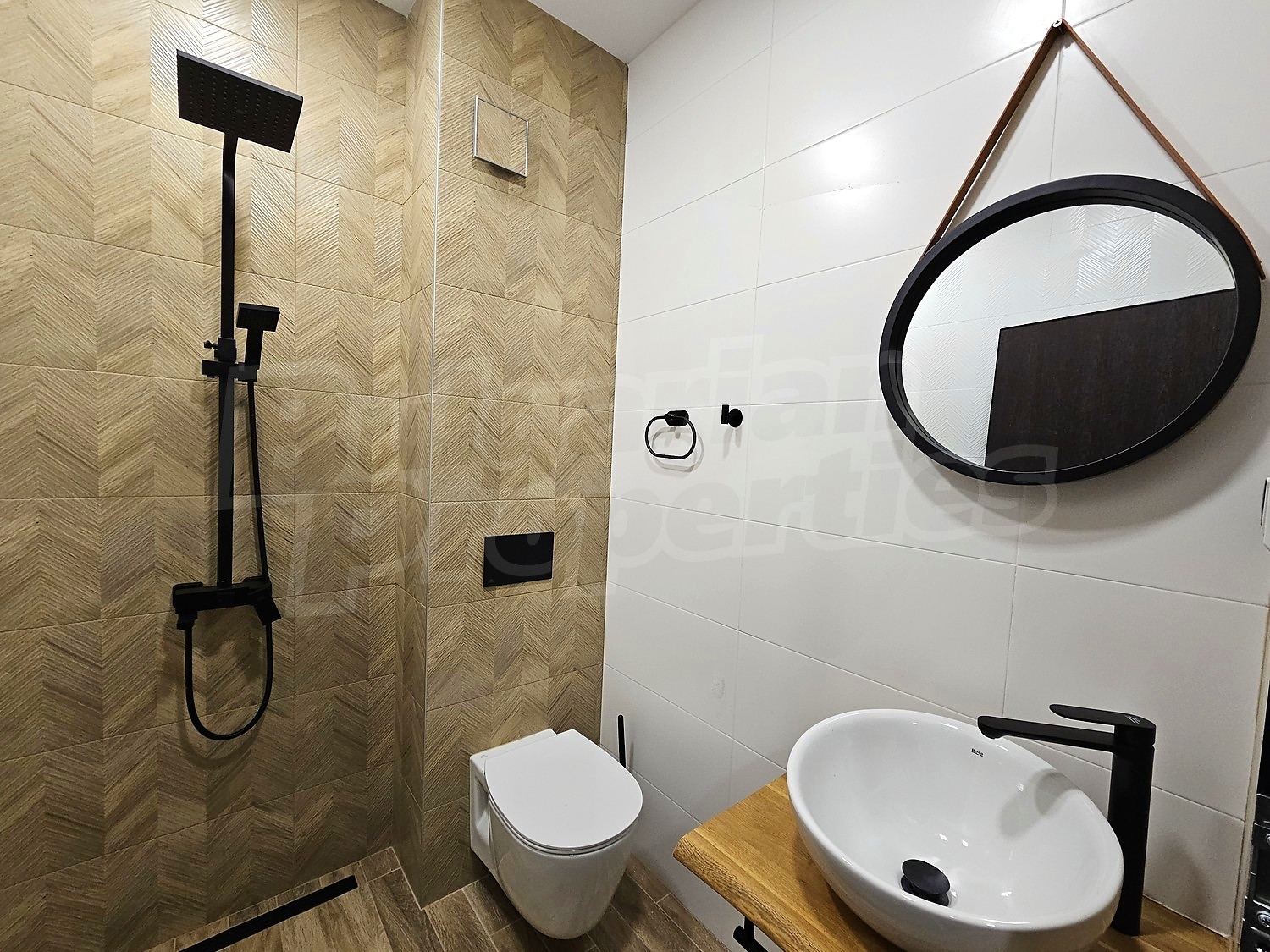 • Модерно оборудвана баня с тоалетна, подово отопление и музикална система, вградена в окачения таван, душ зона, вграден моноблок