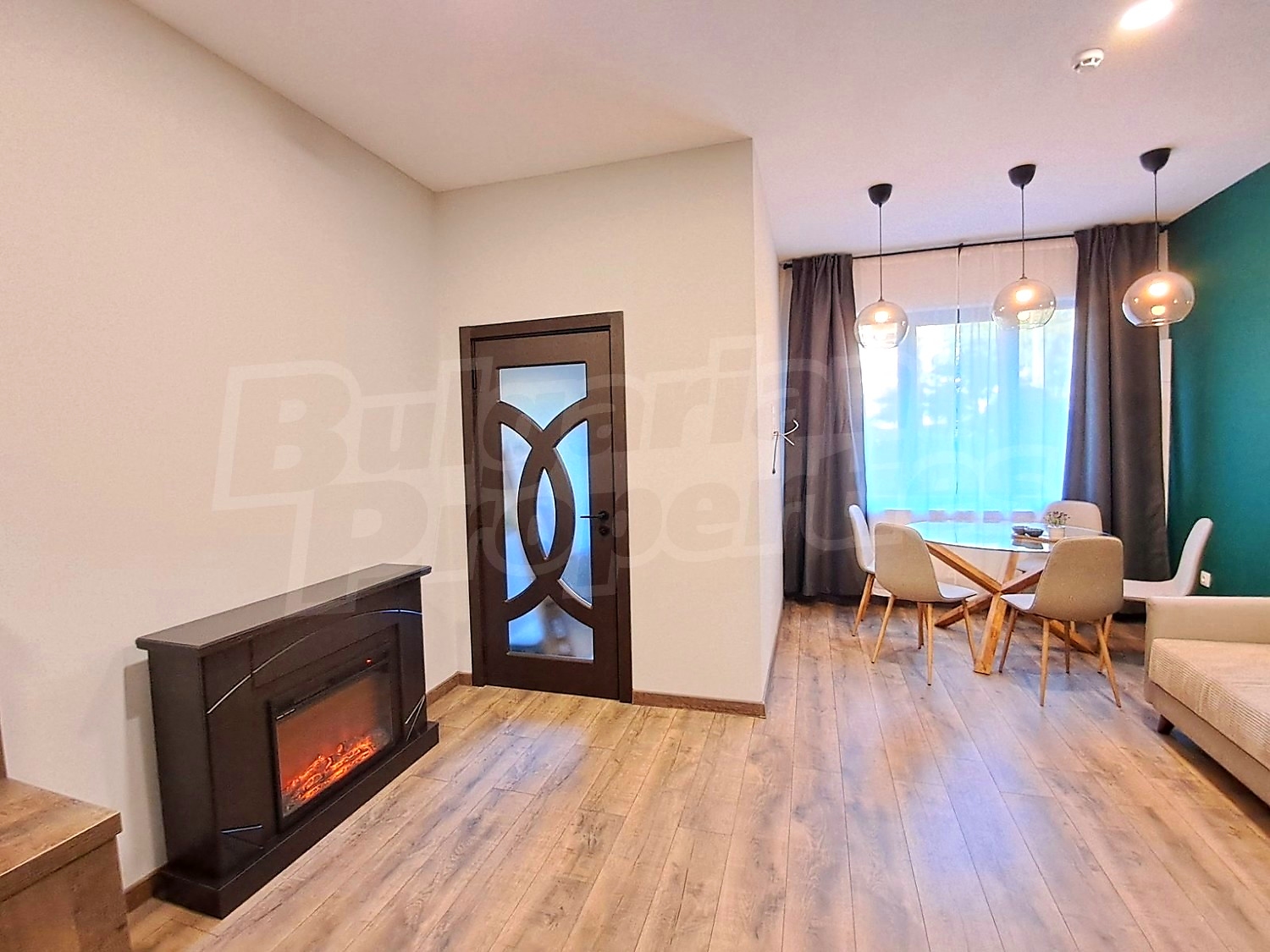 • Релакс кът с камина, спалня, допълнително легло на второ ниво и разтегателен диван за двама, маса за хранене с 5 стола, домашно кино