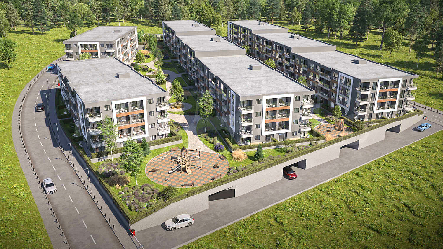 Имотът се строи в зона с ограничени градоустройствени параметри – ниско застрояване до 4 етажа, нова инфраструктура. Комплексът се състои от 8 сгради, с по 1 вход за сграда, всяка на 4 етажа, разположени на терен с площ от 15053 кв.м., с предвидено богато озеленяване, алеи, кътове за отдих, детски площадки, спорт, място и среда за спокоен живот в хармония с природата в подножието на Витоша.