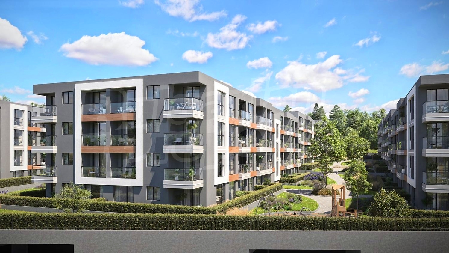 Сградите са със стилна визия, изчистен дизайн, луксозни общи части и асансьор Орона. Проектирани са панорамни, слънчеви апартаменти с благоприятно разположение, преобладаващо изложение юг, изток и запад. Партерните апартаменти са с обособени индивидуални дворни пространства.