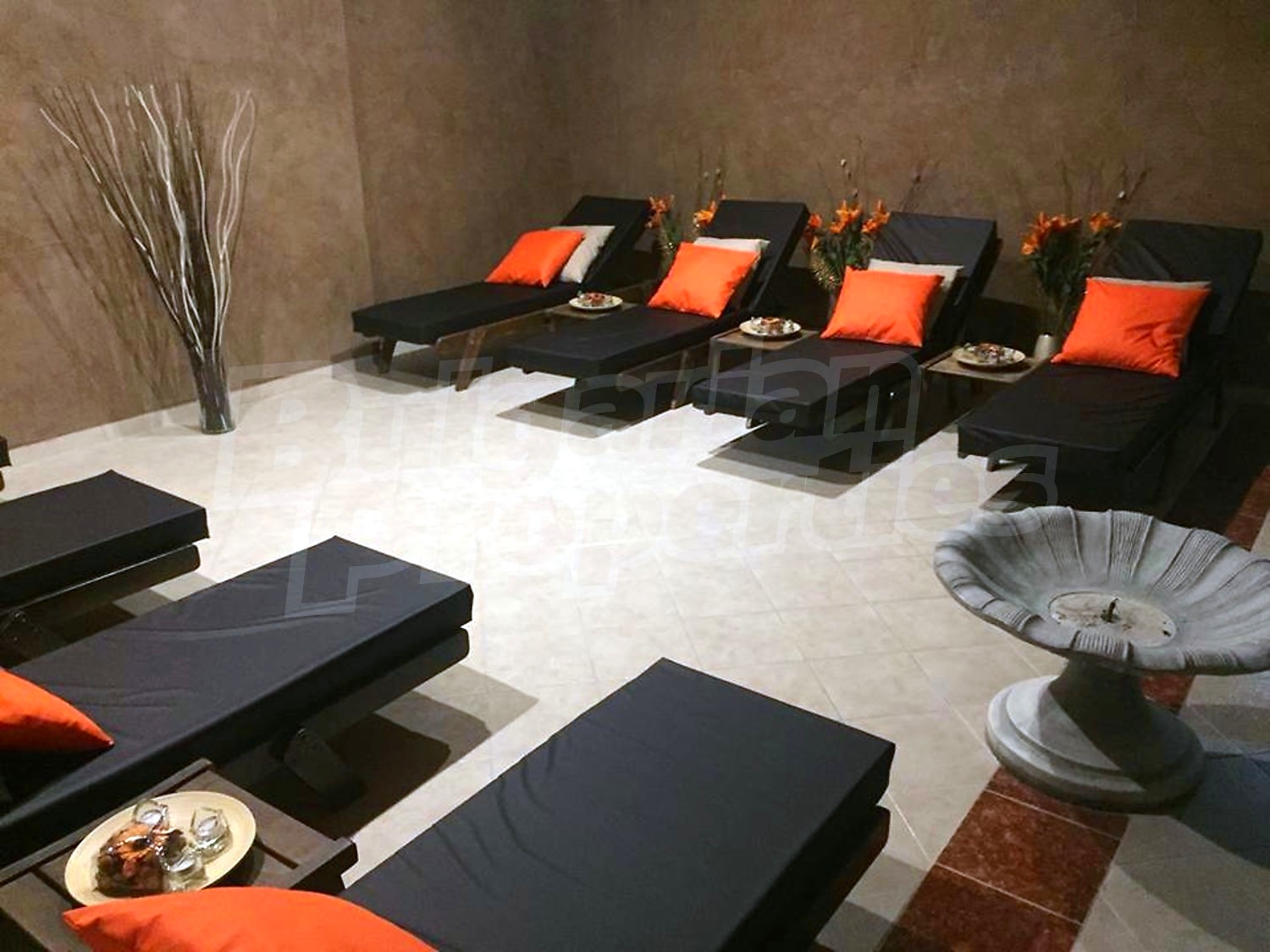 • Модерен СПА и уелнес център с джакузи, сауна парк (финландска сауна, сауна, парна баня и зона за релакс), козметично студио и кабинети за масаж, солариум и фризьорски салон;