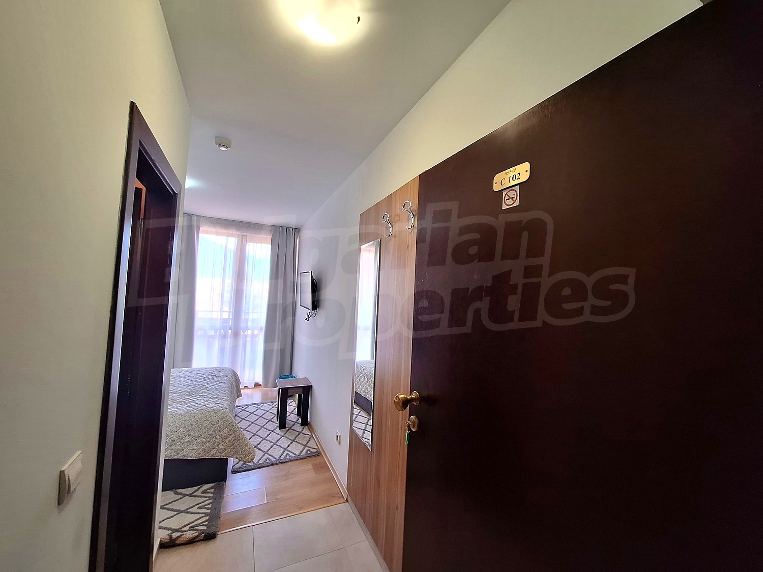 Апартаментът (обща площ - 28.03 м2, чиста площ - 22.2 м2 плюс общи части - 5.83 м2) се намира на 1/5 етаж в комплекс Панорама Ризорт/Panorama Resort. Има западно изложение.