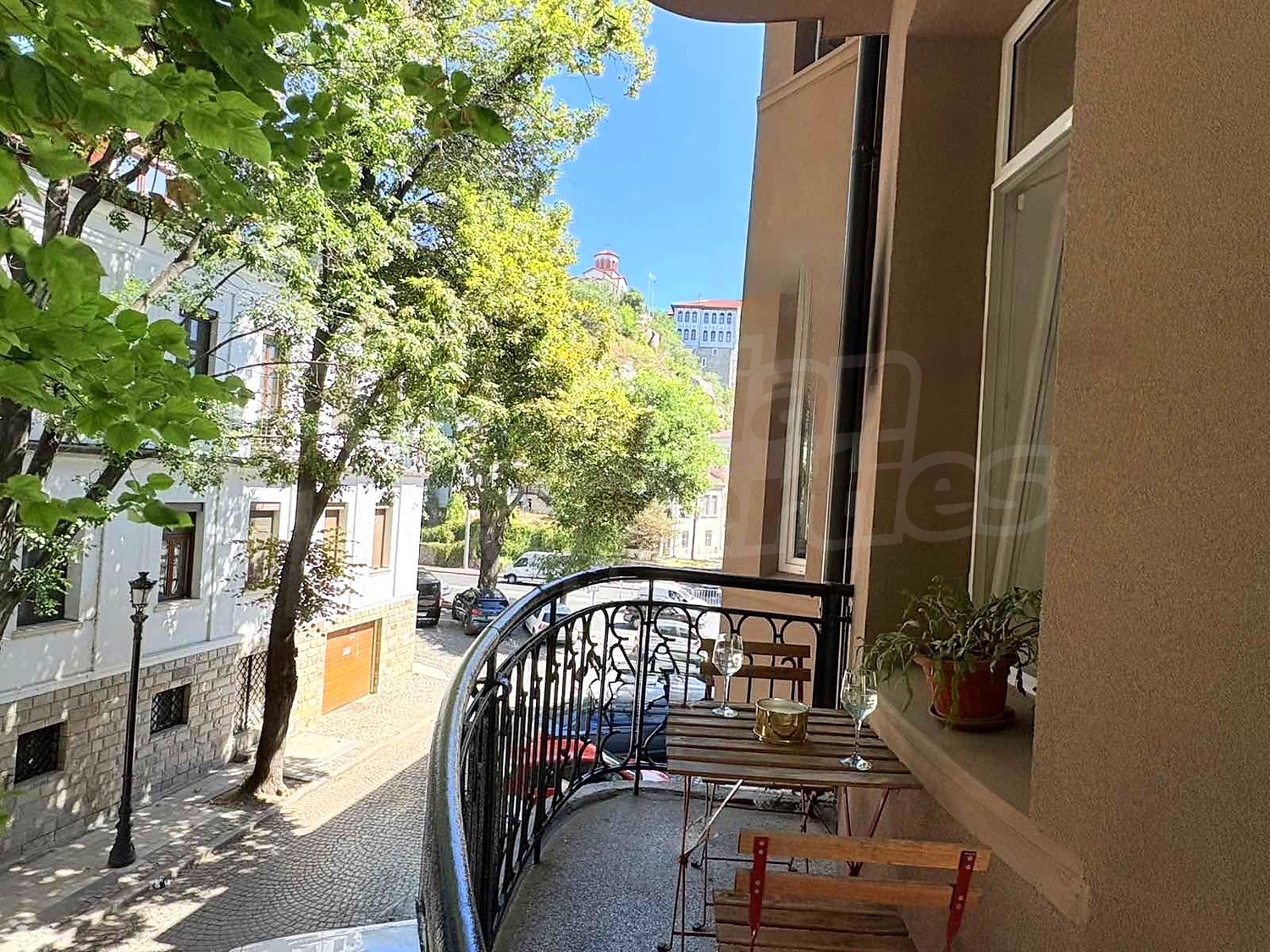 Имотът разполага с пет просторни и светли помещения, отделна кухня с тераса, санитарен възел, килер и още една слънчева тераса с впечатляващи гледки към Стария град и Родопите. Стаите са боядисани, оборудвани с климатици, бюра, интернет портове, като една от тях е със специална шумоизолация.