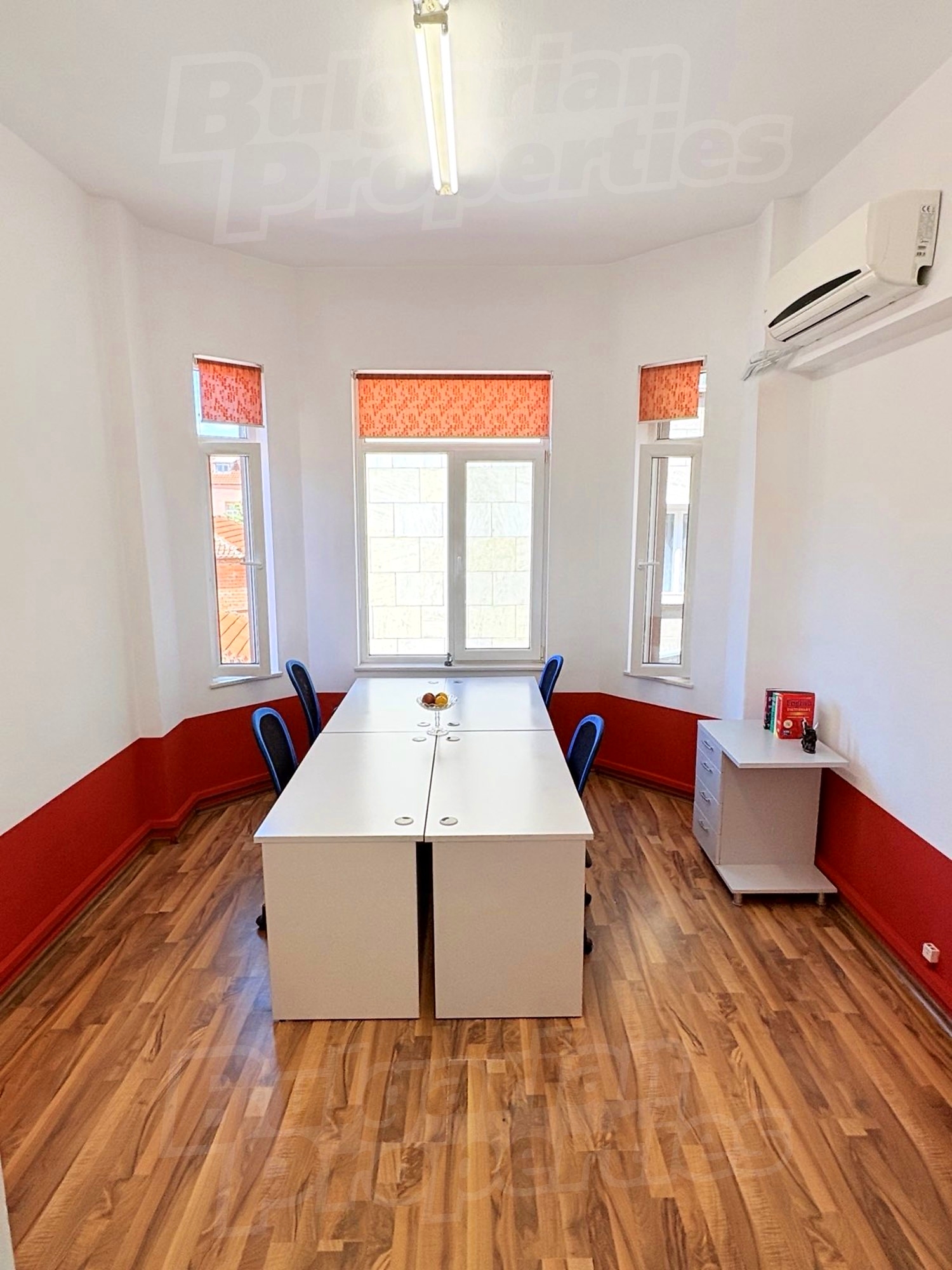 Предлагаме под наем изключителен 5-тстаен офис с площ от 170 кв.м, разположен на втория етаж в поддържана сграда в центъра на Пловдив – срещу църквата „Света Марина“, само на минута пеша от Античния театър и в непосредствена близост до Главната улица и артистичния квартал Капана.