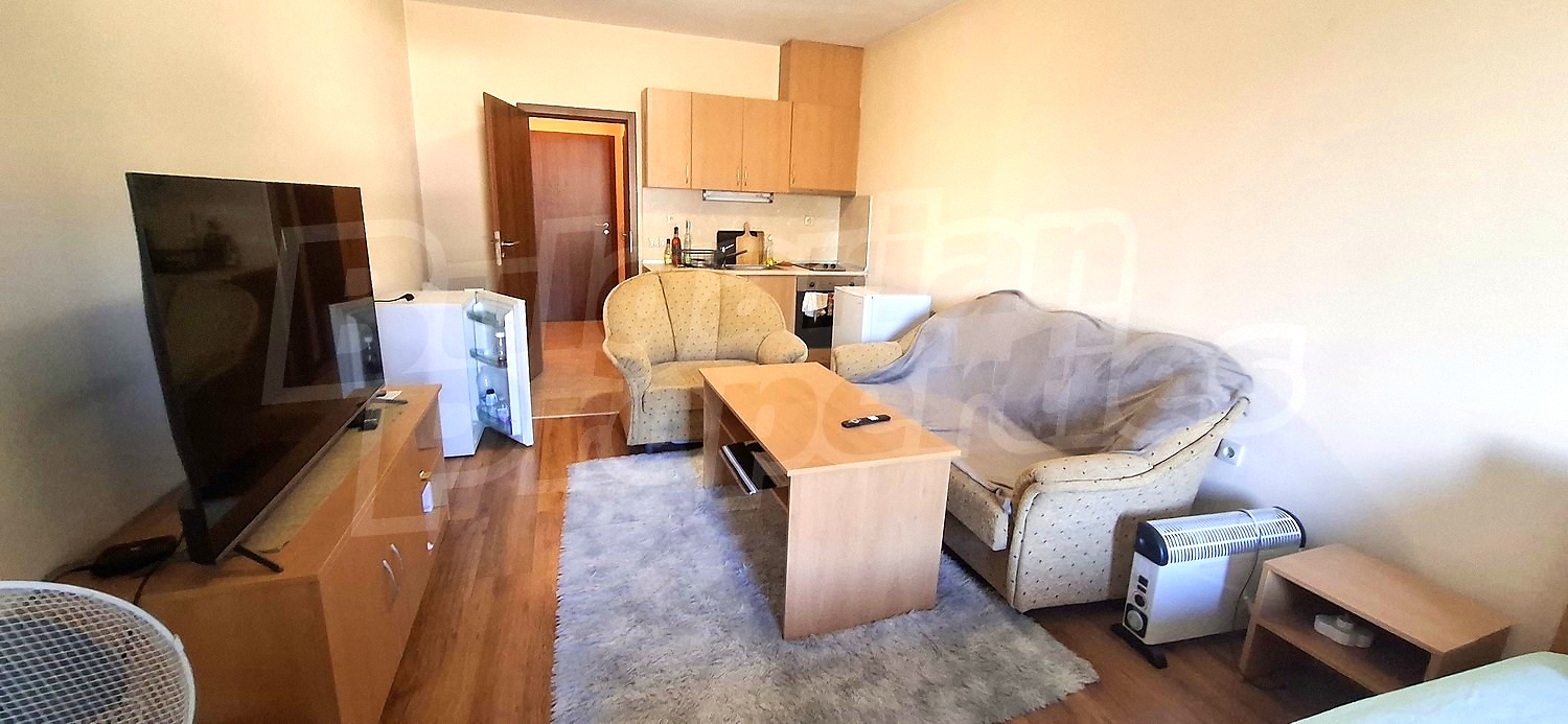 Студиото е ситуирано на втори етаж в отлично поддържана сграда с оригинална архитектура, вдъхновена от традициите на Банско. С площ от 65.06 кв.м. и изложение изток, жилището предлага функционално разпределение – дневна с кухненски кът и зона за спане, баня с тоалетна и тераса. Завършено е с качествени материали: стени – латекс, подове – ламиниран паркет и теракота, ПВЦ дограма.