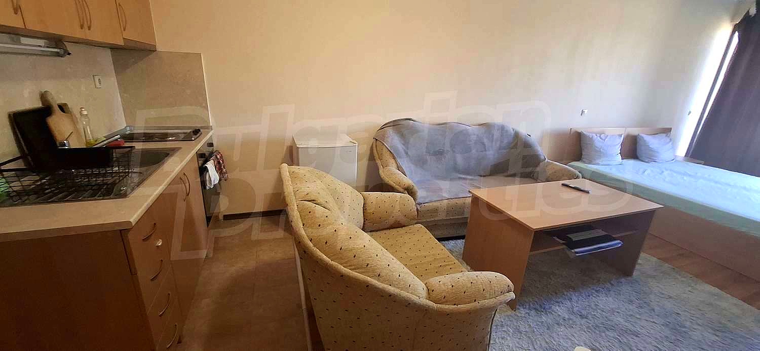 Студиото е ситуирано на втори етаж в отлично поддържана сграда с оригинална архитектура, вдъхновена от традициите на Банско. С площ от 65.06 кв.м. и изложение изток, жилището предлага функционално разпределение – дневна с кухненски кът и зона за спане, баня с тоалетна и тераса. Завършено е с качествени материали: стени – латекс, подове – ламиниран паркет и теракота, ПВЦ дограма.