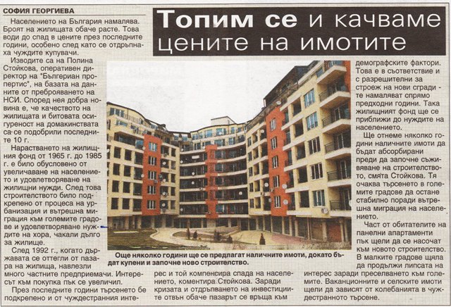 Населението на България намалява. Броят на жилищата обаче расте. Това води до спад в цените през последните години, особено след като се отдръпнаха чуждите купувачи.