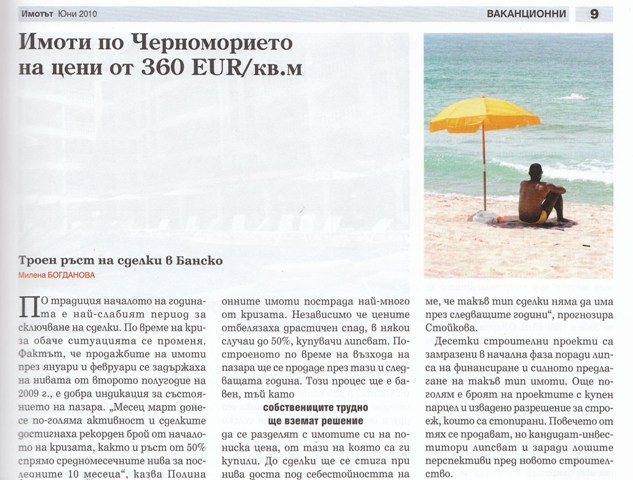„За това говори и тенденцията от началото на годината - значително намаление на офертните цени от страна на строители и продавачи на ваканционни имоти в морските и ски курорти", казва оперативният директор на „Бългериан Пропертис".