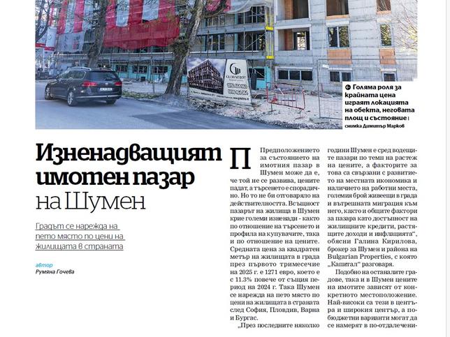 В най-новото специализирано издание на Капитал, посветено на състоянието на имотния пазар в България през 2025 г., BULGARIAN PROPERTIES за пореден път