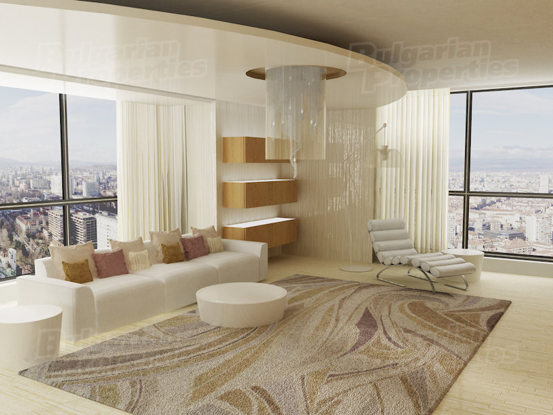Най-скъпи са панорамните жилища на последните етажи. Офертната цена от 5200 евро/кв. м се отнася само за 2 апартамента - всеки с площ 260 кв. м, разположени на 21 и 22 етаж. Над тях е само мезонетът, който вече е продаден.